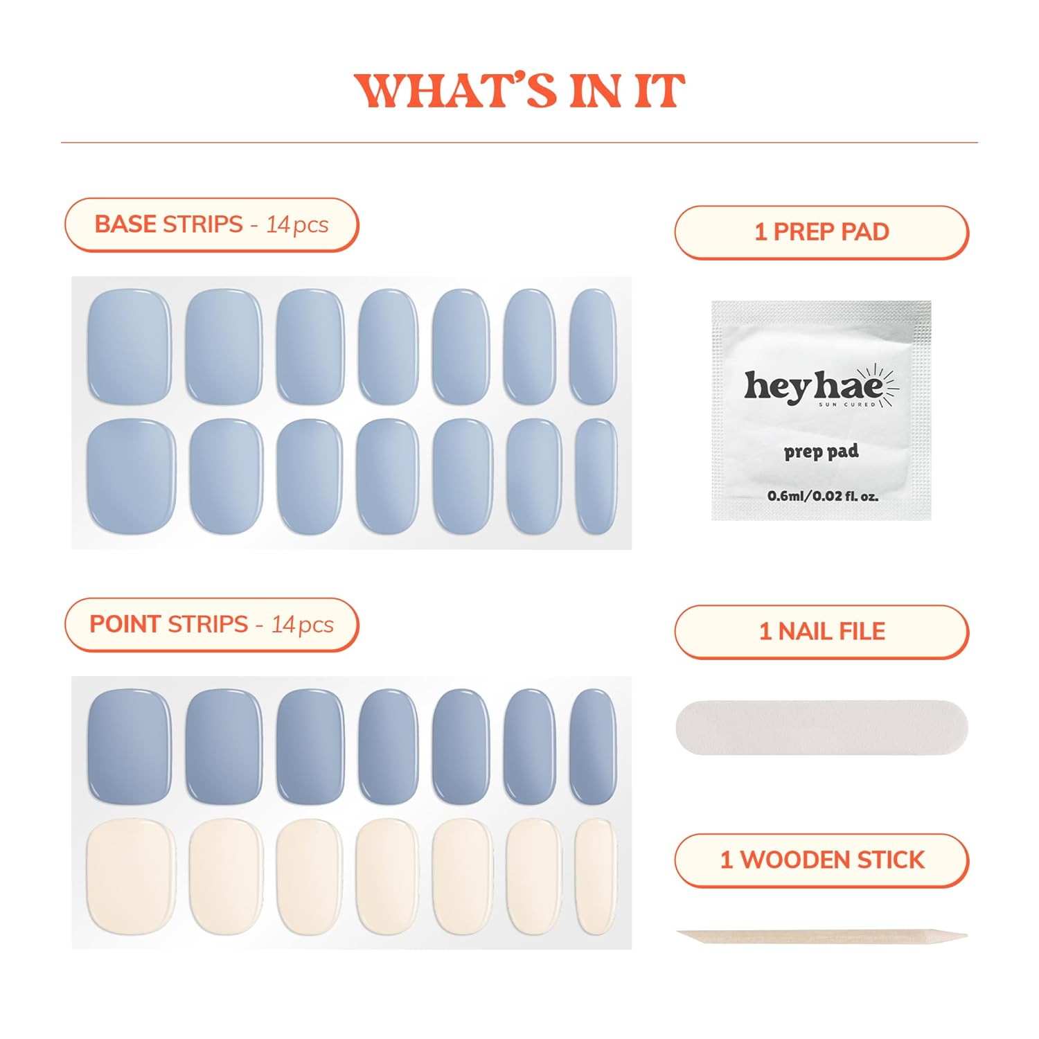 Semi Cured Gel Nail Strips | No LED Lamp Needed | Solid, Blue, Spring | Easy Apply & Remove, Salon Quality | Includes 28 Strips, 1 Prep Pads, Nail File & Wooden stick - Hey, It's Your Era