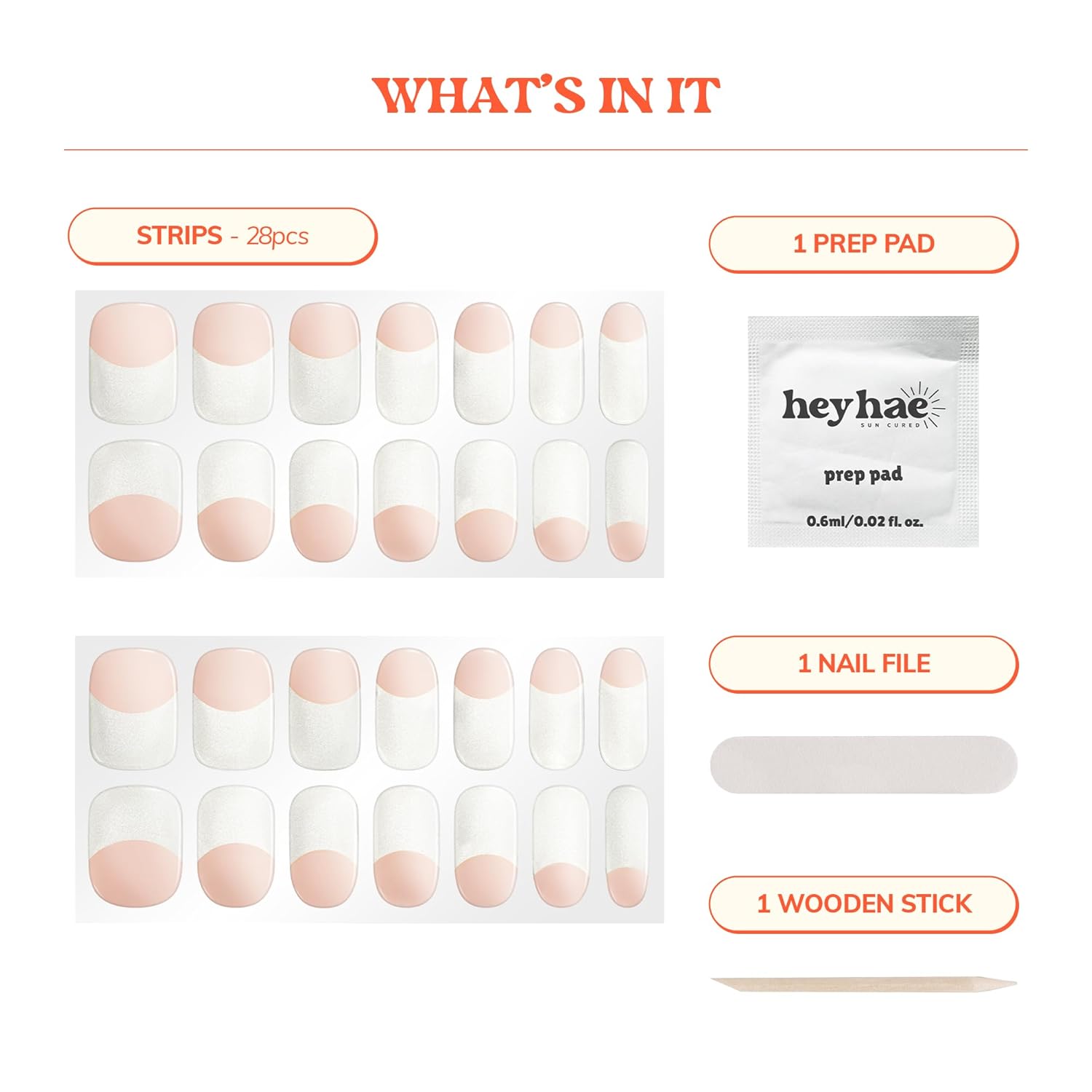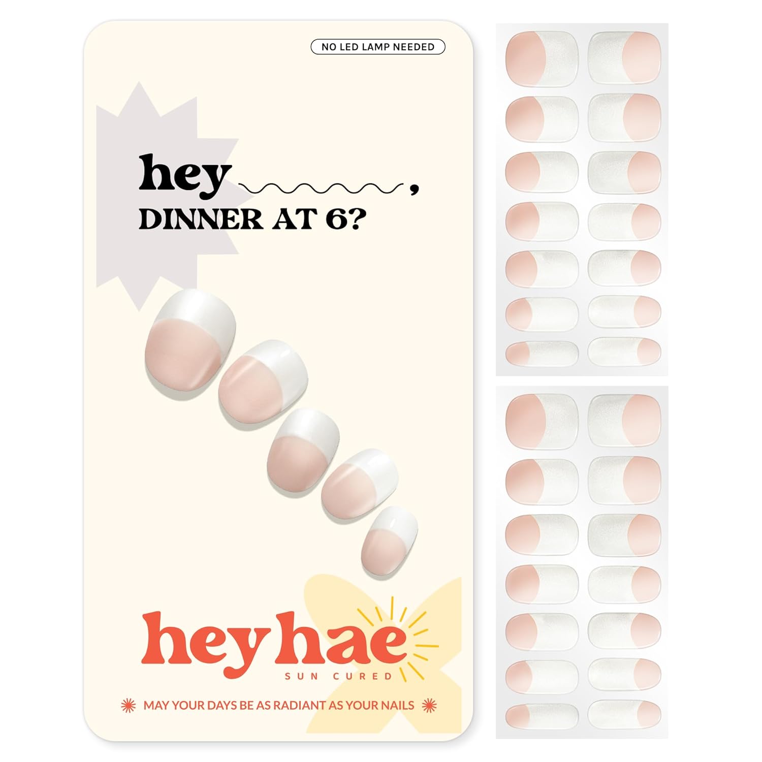 Semi Cured Gel Nail Strips | No LED Lamp Needed | French, Pink, Spring | Easy Apply & Remove, Salon Quality | Includes 28 Strips, 1 Prep Pads, Nail File & Wooden Stick - Hey, Dinner at 6?