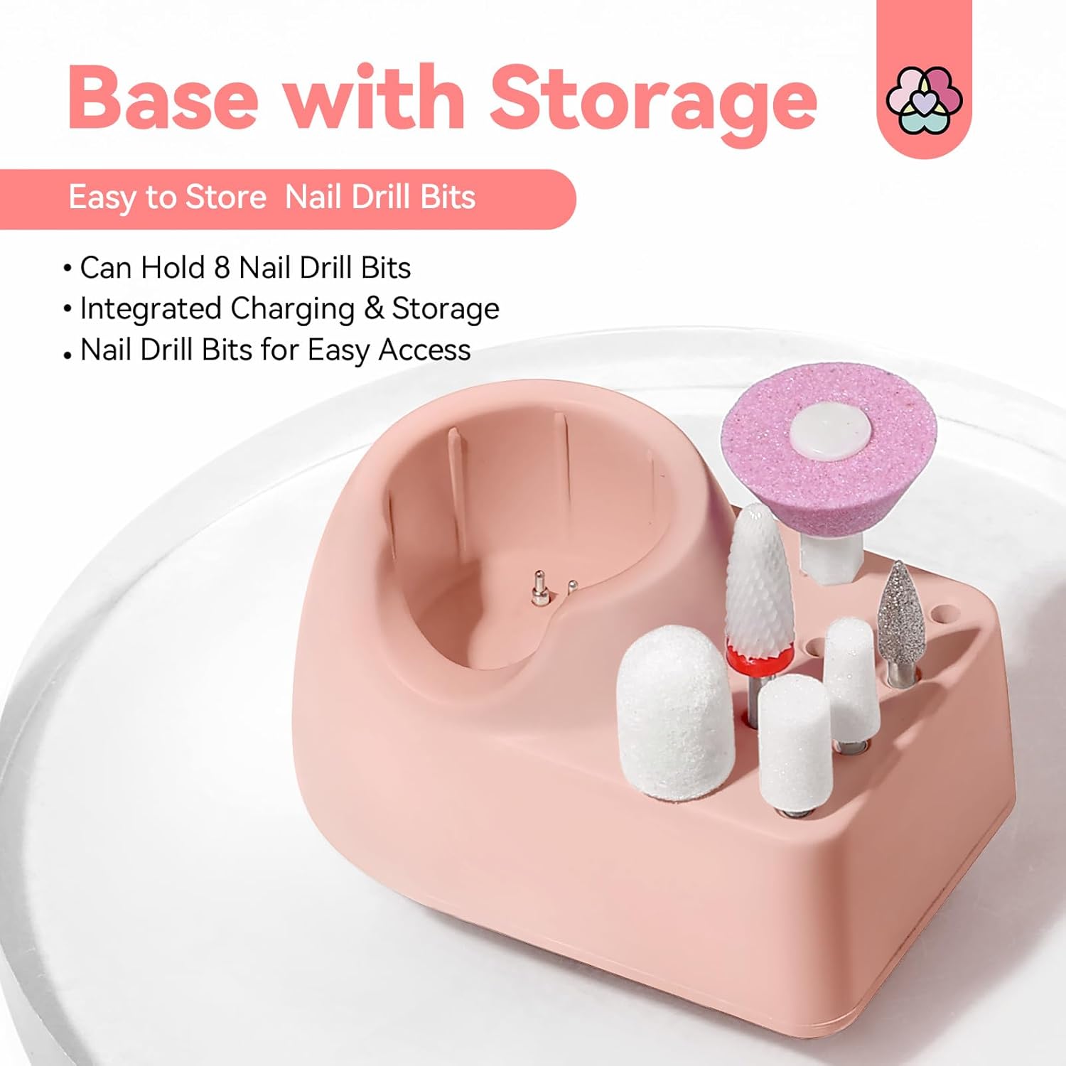 - User-conveniently Design: The base can hold up to 8 drill bits, keeping your manicure tools neatly arranged. The LED display provides clear information on speed, rotation direction, and battery status. Three adjustable speed settings (L, M, H) and a F/R switch for simple operation.