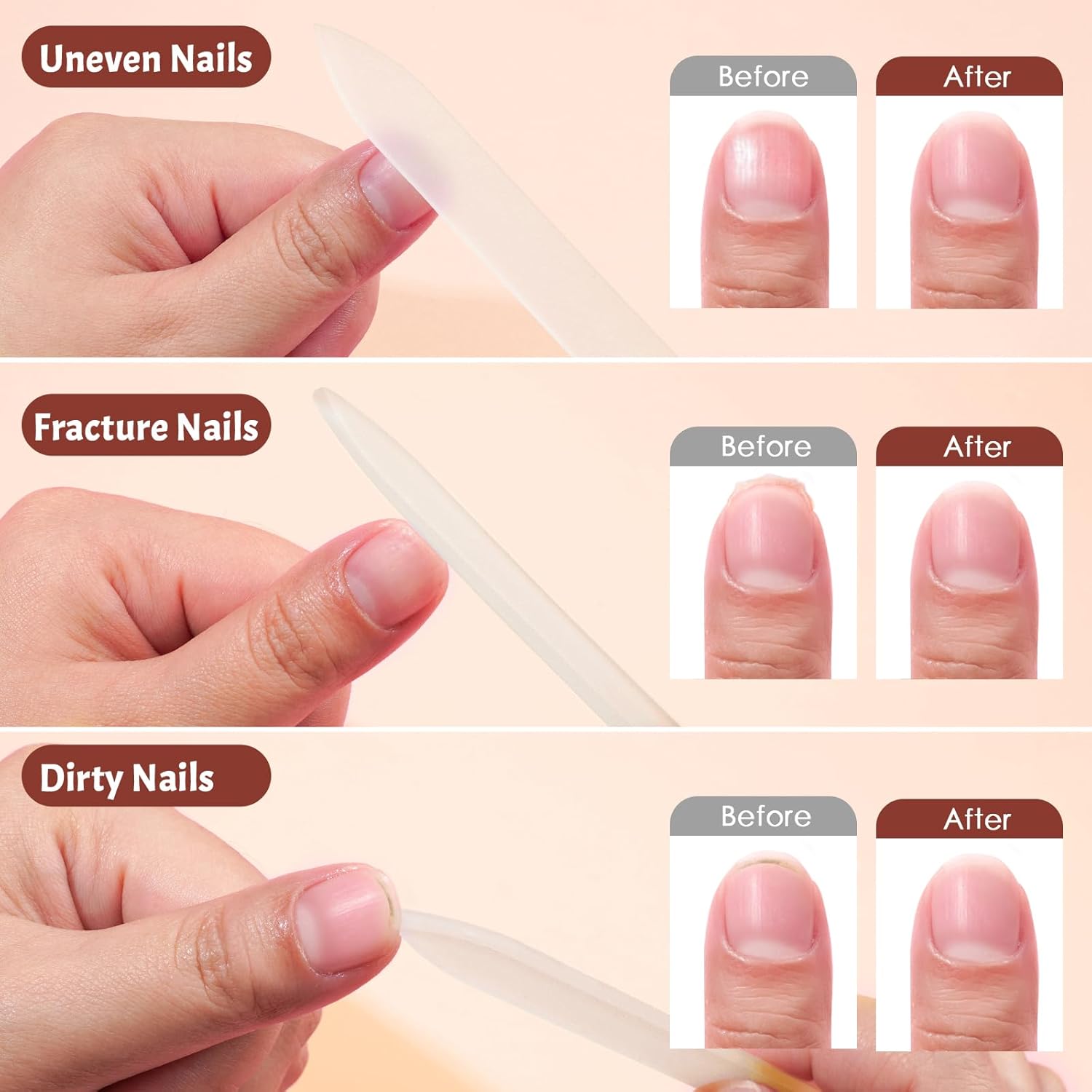 - GLASS NAIL FILE WITH CASE: The glass nail files for natural nails with case will not scratch the objects in your bag, it places nicely in your bag or purse. This glass nail file set comes with a portable case, making it convenient to bring with you wherever you go. Say goodbye to rough and uneven nails with glass files for nails. Looking for the unique stocking stuffers gift for women? Our glass nail file is ideal gift for women and girls on Birthday/Women’s Day/Christmas/Mother's Day, etc.
