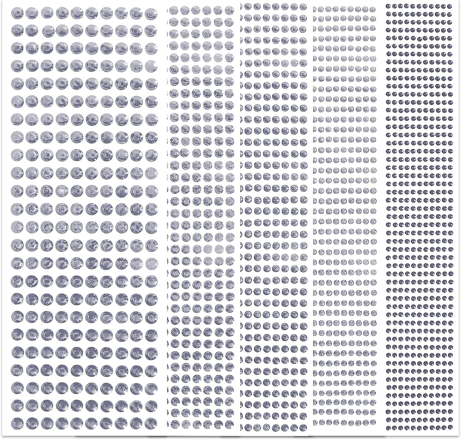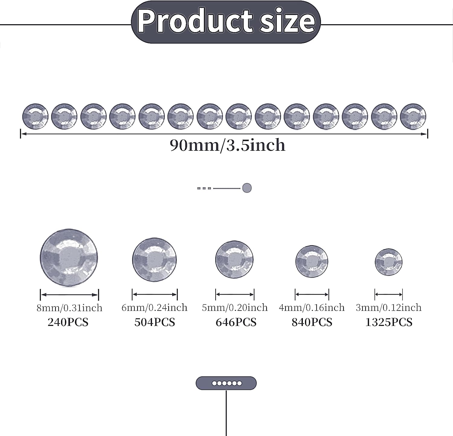 - đź’Ž[ Value Set ] Package contains 5 sheets rhinestone stickers, 3555 pieces nail gems in 5 sizes, including 1325pcs of 3mm, 840pcs of 4mm, 646pcs of 5mm, 504pcs of 6mm, 240pcs of 8mm, enough to meet your various makeup and craft projects needs.