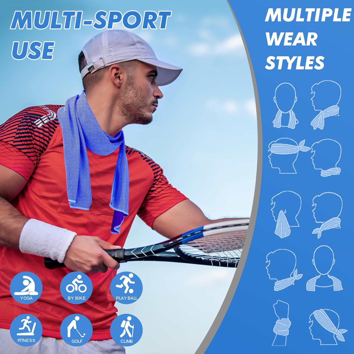 Cooling Towels for Neck and Face - 12Pack 47x12 Inch Ice Cold Microfiber Towels, Soft & Breathable Cooling Towel for Hot Weather, Sports, Yoga, Workout, Running, Golf, Camping