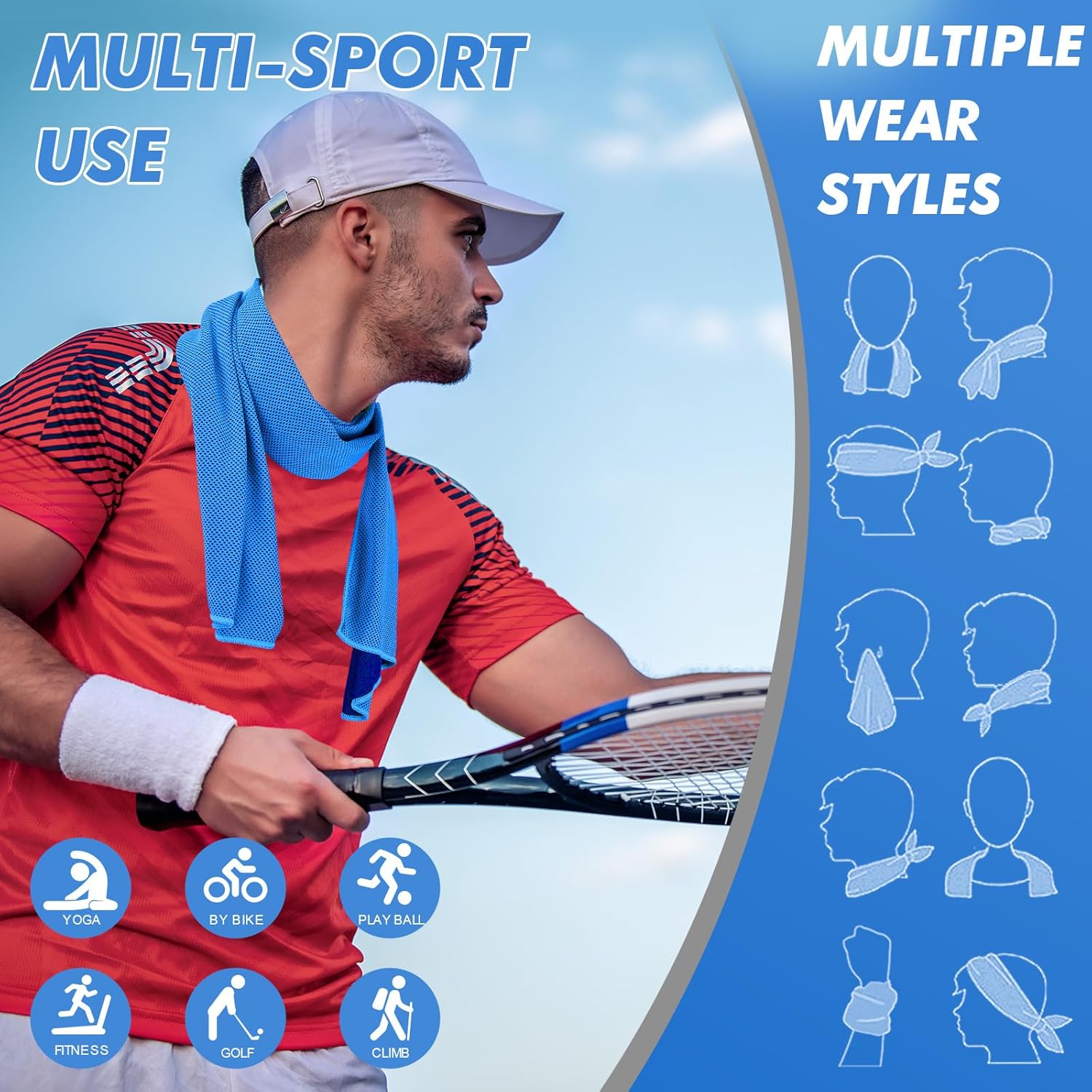 - MULTIFUNCTIONAL TOWEL: This cool towel is perfect for exercise enthusiasts who love yoga, sports, exercise, gym, swimming, golf, running, camping and fitness. It is also ideal for outdoor workers who work in hot environments to prevent sun damage and absorb heat to keep cool. You can also use it to relieve the headache caused by fever, and the physical cooling of burns. Suitable for people of all ages, but also for pets
