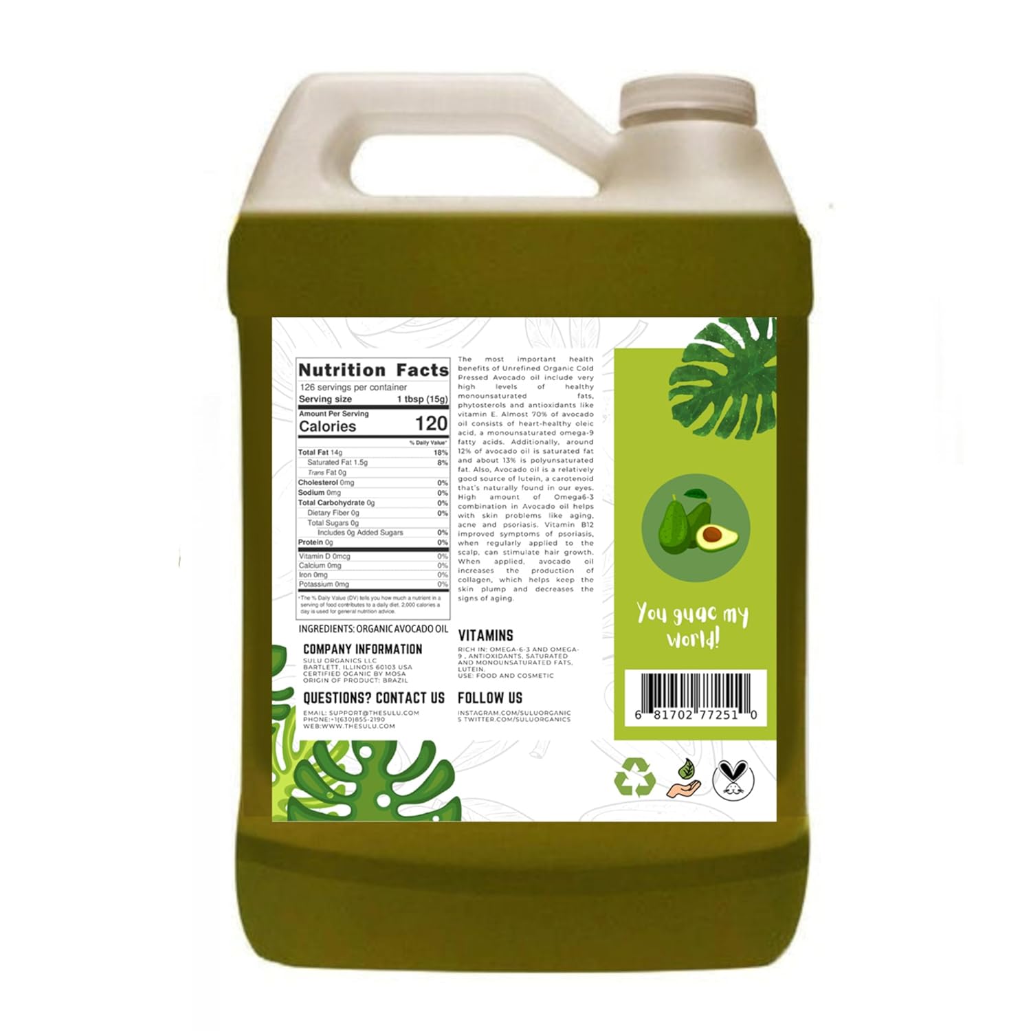 4 LBS/64 FL.OZ Certified Organic Unrefined Extra Virgin Raw Avocado Oil