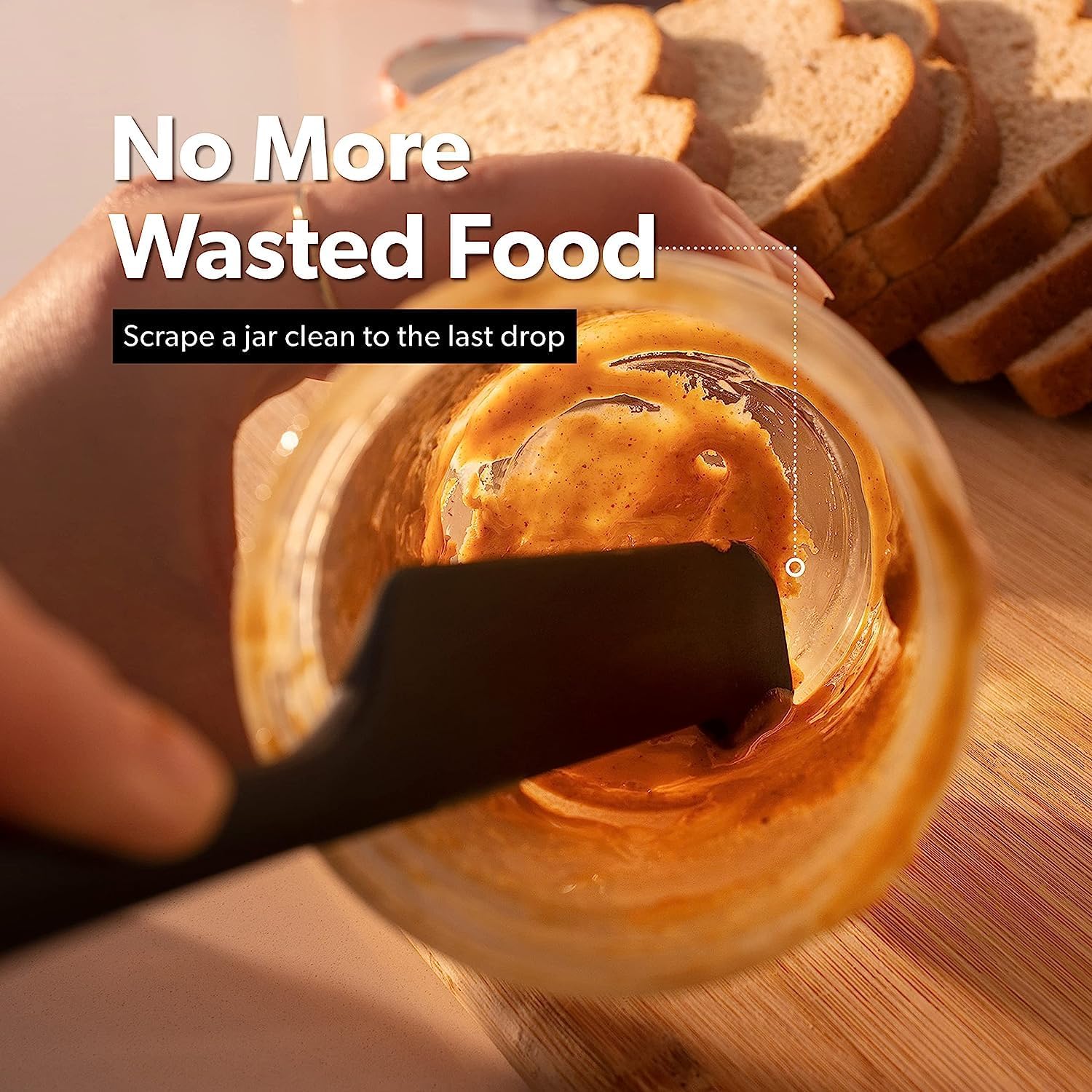 - ELIMINATES WASTED FOOD - Our innovative and revolutionary design ensures you can pick a jar or blender clean without getting your hand in the food. Unlike cheap plastic utensils that are ineffective at getting too hard to reach spots in a jar or blender, we have created silicone spatulas that will easily and completely remove mayo, peanut butter, and other foods hassle free, to the last drop. The result, no more wasted food.