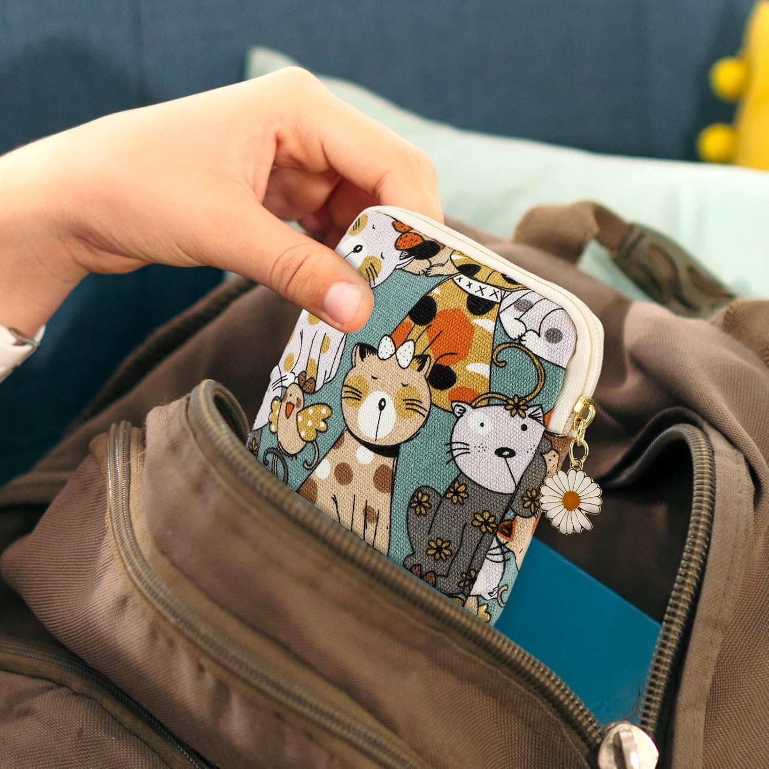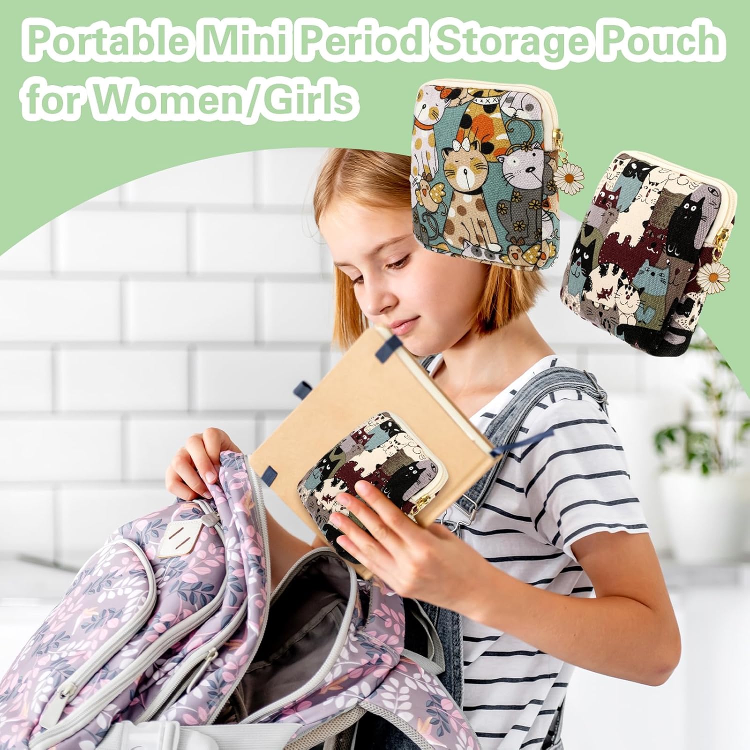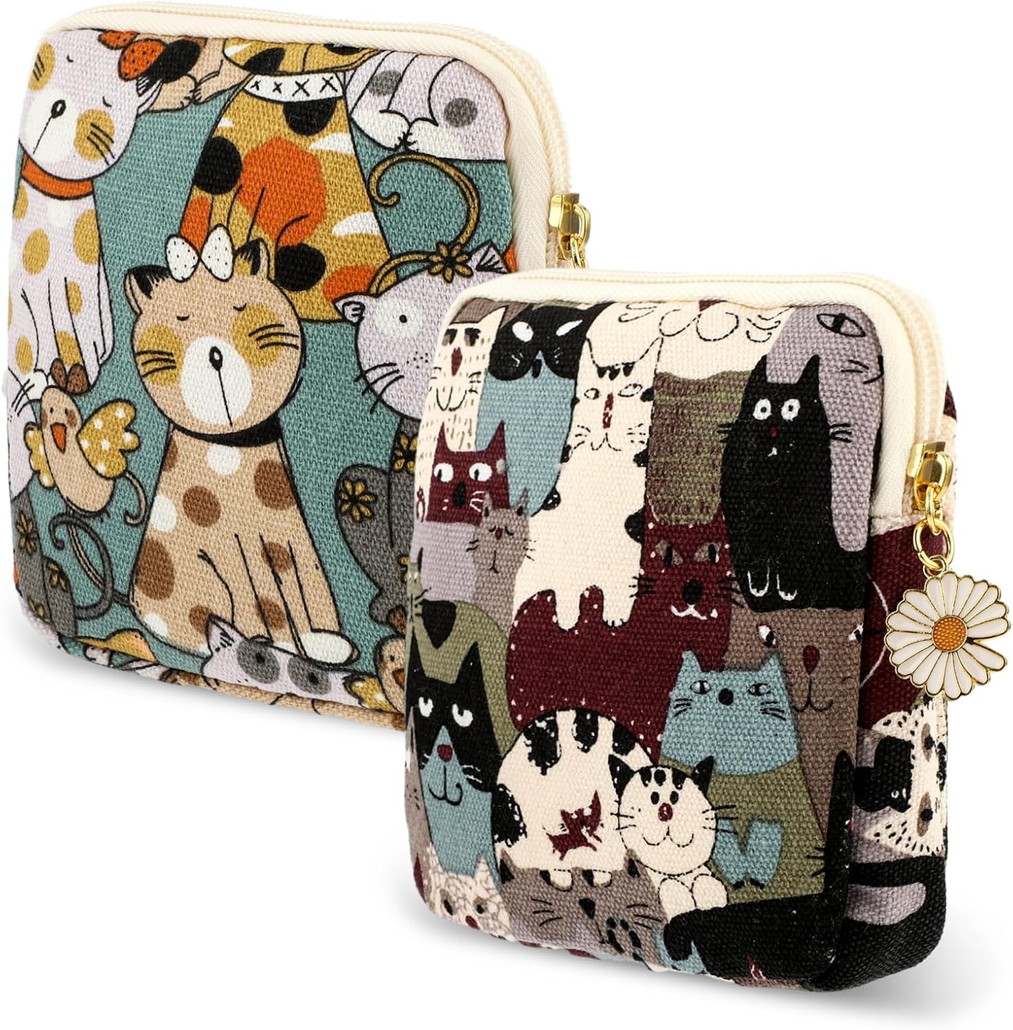 cobee 2PCS Sanitary Pad Storage Bag, Cute Sanitary Napkin Storage Purses Portable Period Bag with Daisy Zipper Panty Liner Tampon Menstrual Cup Nursing Pad Holder Pouch for Girls Women Travel(Cat)