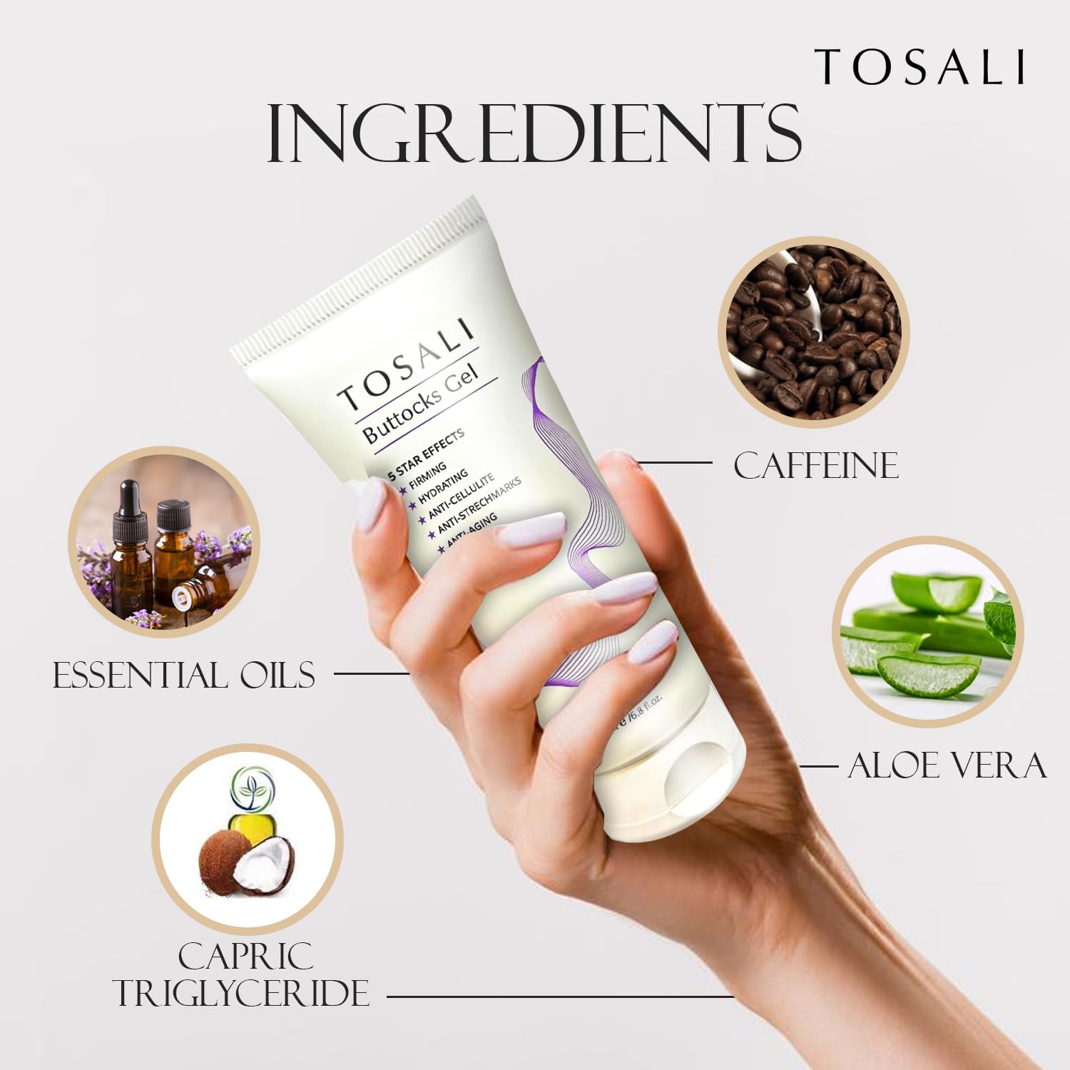 Buttocks Firming Gel 6.8 fl oz - Stretch Marks Removal, Anti Aging & Anti Cellulite Gel with Caffeine, Aloe Vera & Essential Oils, Instant Hydration Skin Care Formula, Tightening & Skin Firming