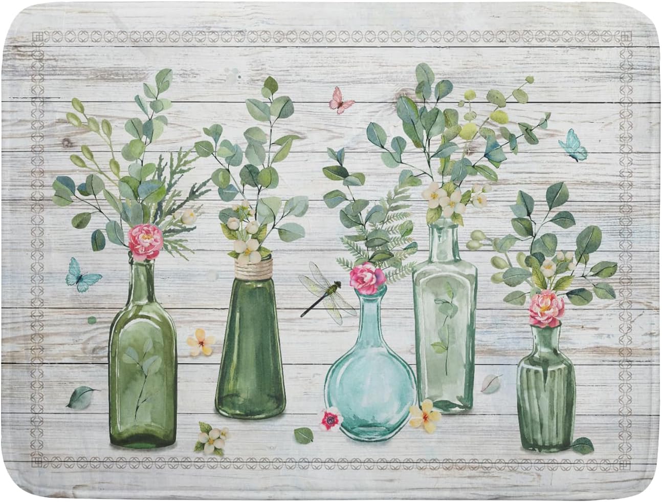 Fern Leaf Vase Dish Drying Mat 18x24 Inch Eucalyptus Leaves Microfiber Absorbent Dish Drainer Mat Reversible Drying Pad for Kitchen Counter Sink