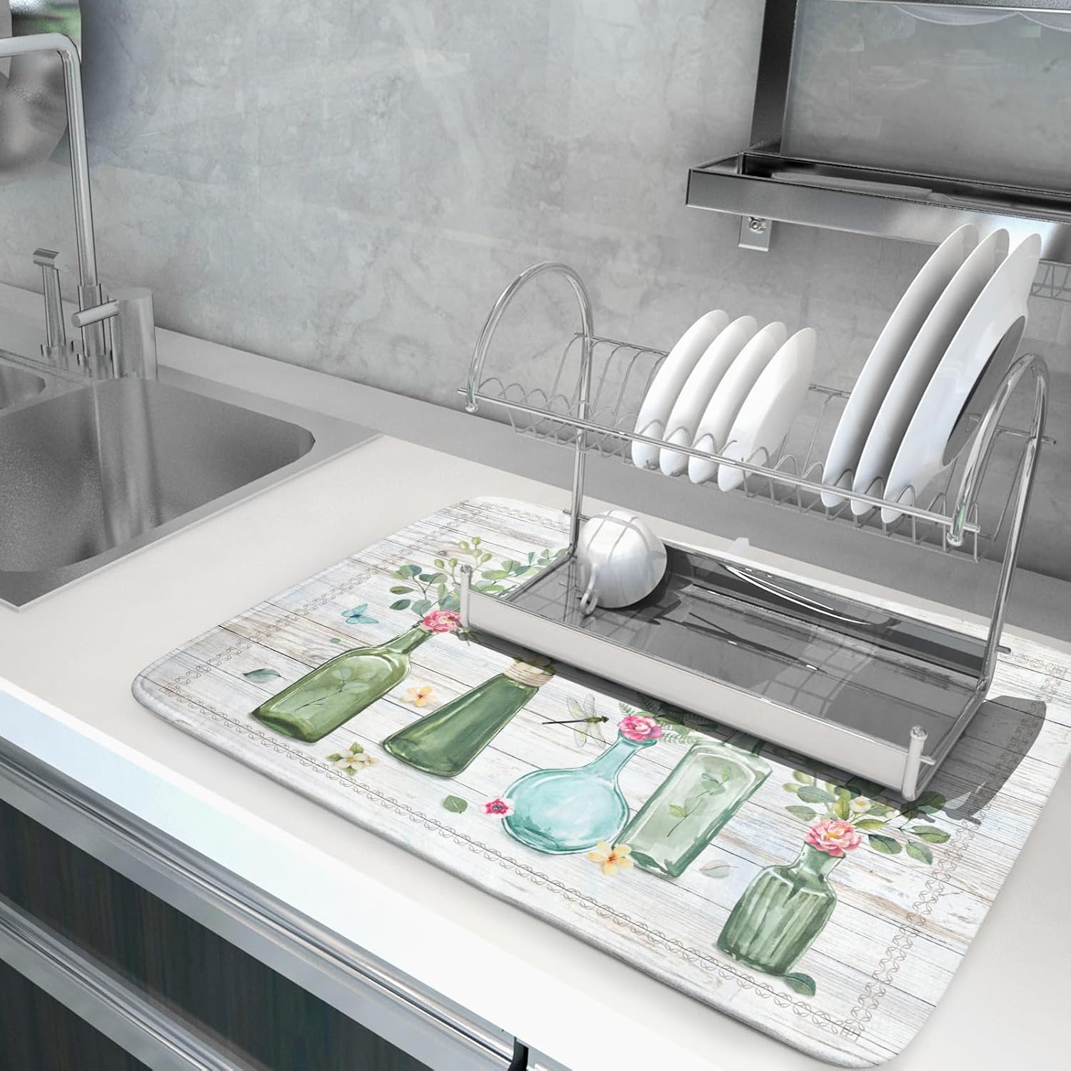 - 【Protect Tableware】Place your dishes on it or under dish racks, the floral leaf dish mat prevents bowls, glassware, and more tablewares from being scratched or worn, can be used as dish drying mat, sink mat, dishes drainer mats to keep the countertop dry and tidy.