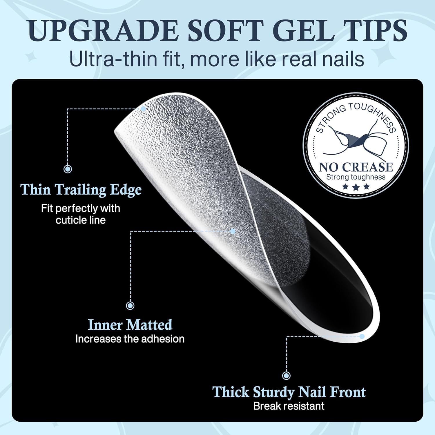 - Foldable Soft Gel Tips: Crafted from gelly soft gel material, these fake nails leave no trace even when bent. Their bright clarity allows for easy pressing, trimming, and painting, helping you create your ideal nail shape effortlessly. Perfect for a true DIY manicure.
