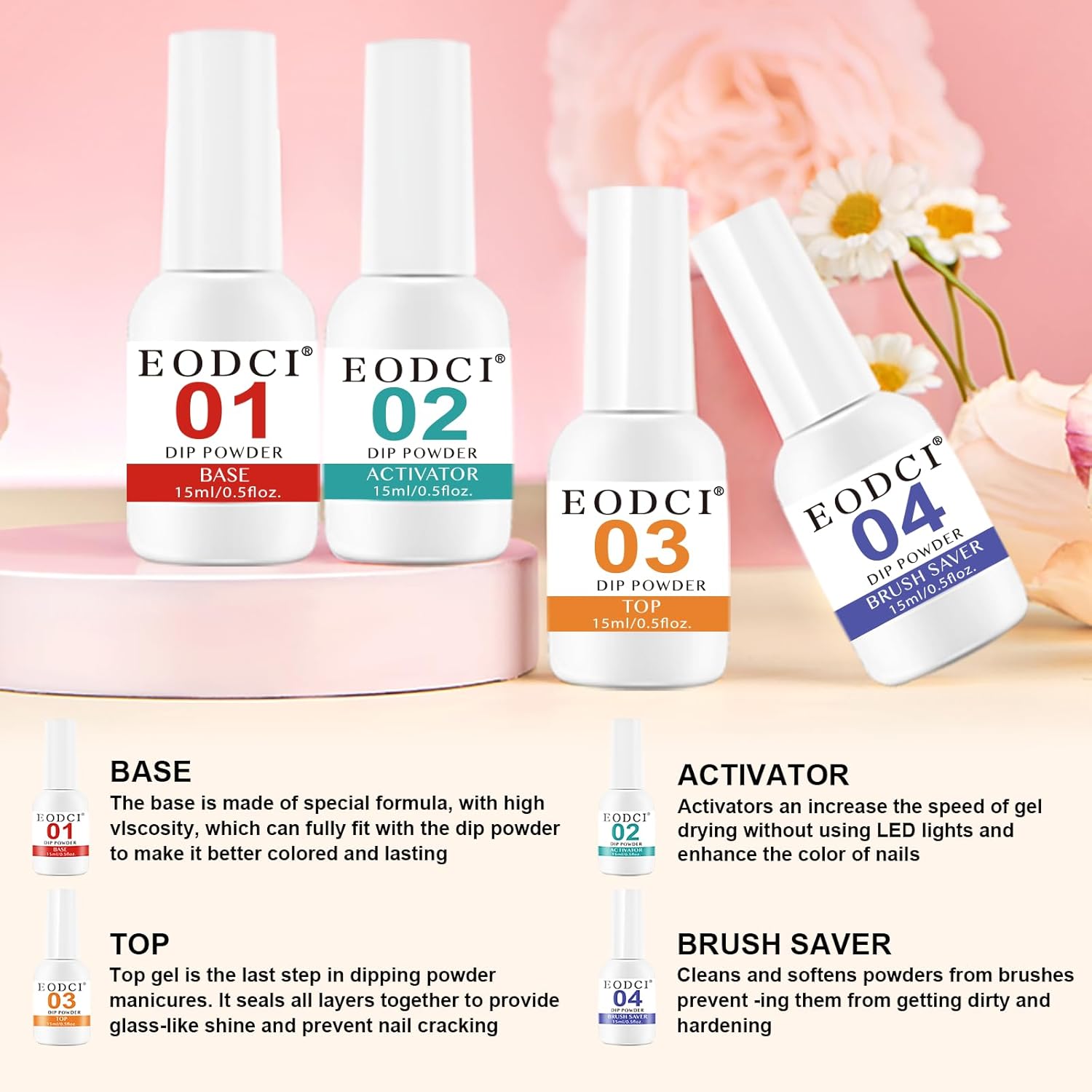 - 【No Lamp Needed】Eodci Nail Dipping Powder does not require UV/LED light to cure, is skin friendly while avoiding skin darkening and damage, safe and easy to use, suitable for beginners and professional nail salons.