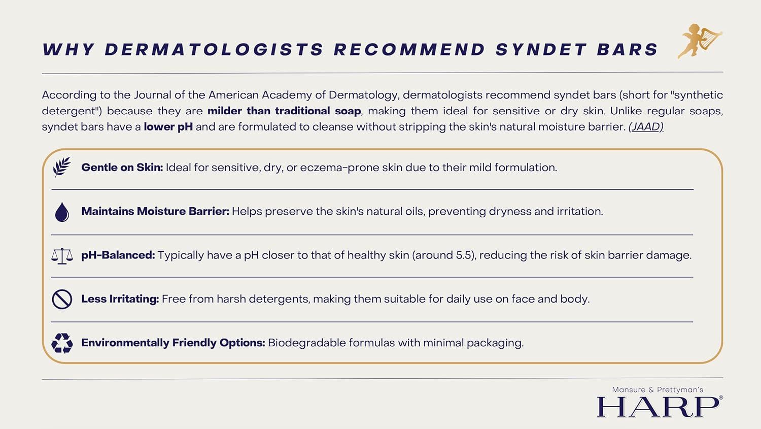 - âś… pH-Balanced 5.0-6.0 to match and retain the skin's natural moisture barrier. Completely saponified vegetable oil free so it wont dry your skin. HARP products are not blends either, we do 100% syndet bars. Theres nothing better or more gentle on the market.