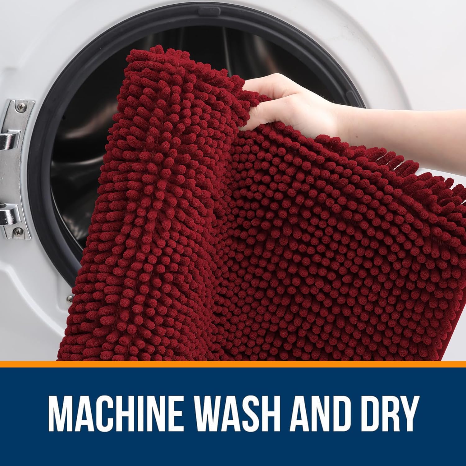 OLANLY Bathroom Rugs 44x24, Extra Soft Absorbent Chenille Bath Rugs, Rubber Backing Quick Dry, Machine Washable Bath Mats for Bathroom Floor, Tub and Shower, Home Decor Accessories, Red