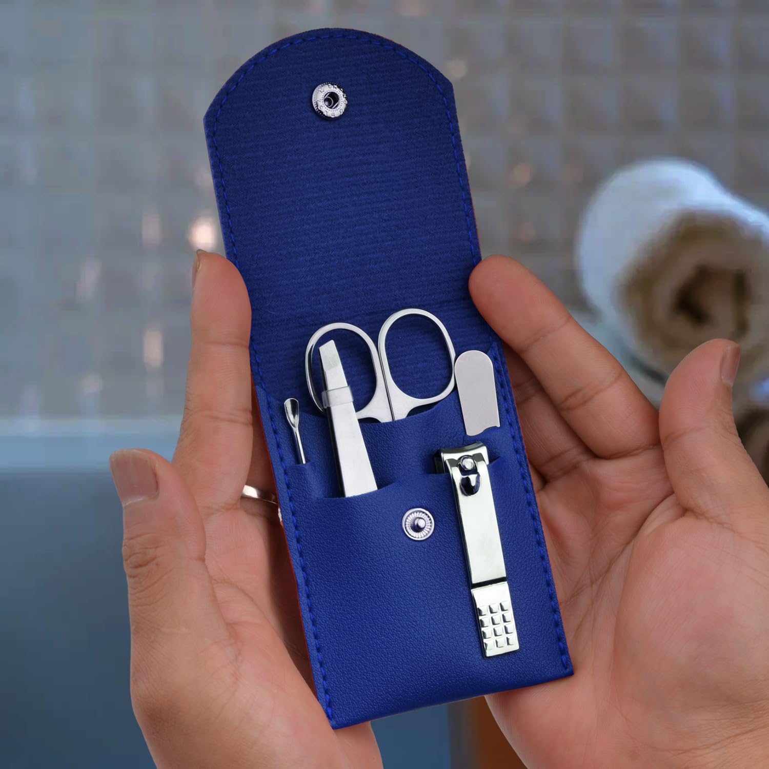 - TRAVEL FRIENDLY AND USER FRIENDLY: Our Travel Grooming Nail kit is lightweight and perfect size in design(4*2.65 inch/10*6.7cm), making it your perfect travel partner. You can put it in your bag and carry it wherever you go, ideal for travel and home use etc. It is easily opened/closed simply by a push of the button, and the case keeps all tools well organized, clean and secure all the time.