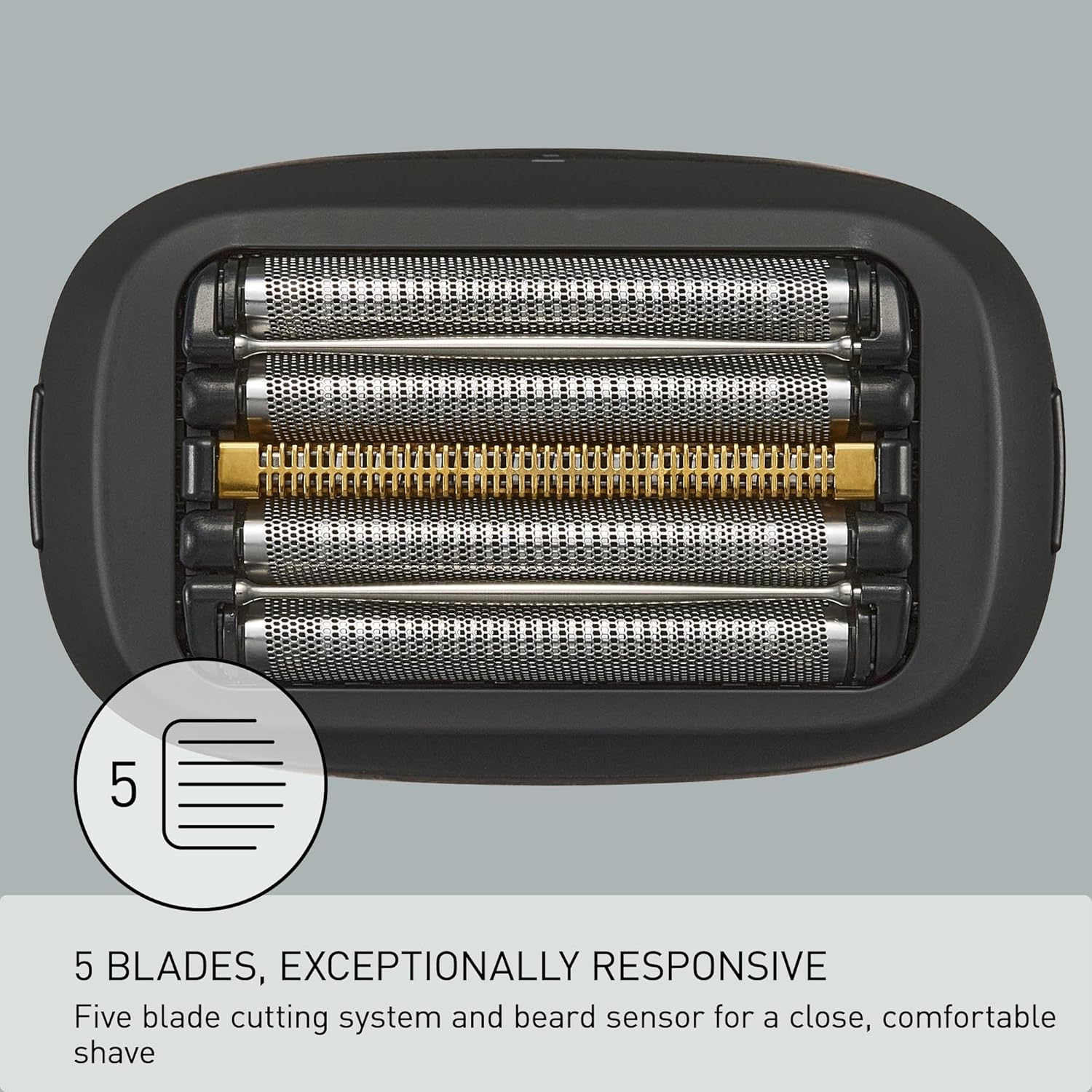 - Quiet Luxury That's Travel Ready: The unique, smooth shape of these electric shavers for men makes them suited to pack for trips and offers exceptional control when shaving; powerful five-blade shaving system gently cuts every hair without irritation