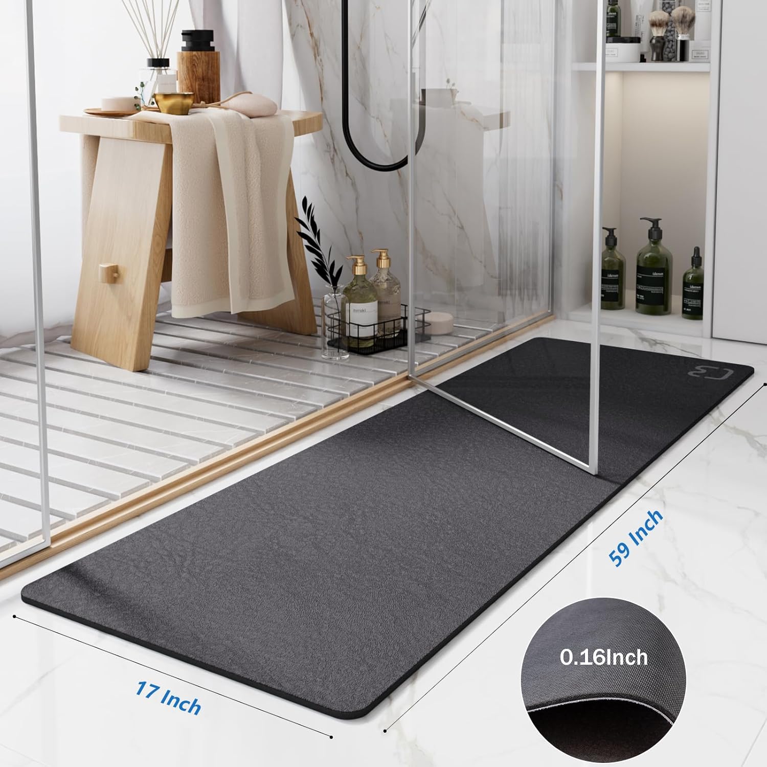 - 【Versatile Usage】This thin bathroom mat is designed to fit under the door and can be used in various settings. Whether in the bathroom rug runner, kitchen mat, laundry room, vanity, sink, hallway, or RV mat, this diatomite stone bath mat adds a stylish and functional touch to any space.