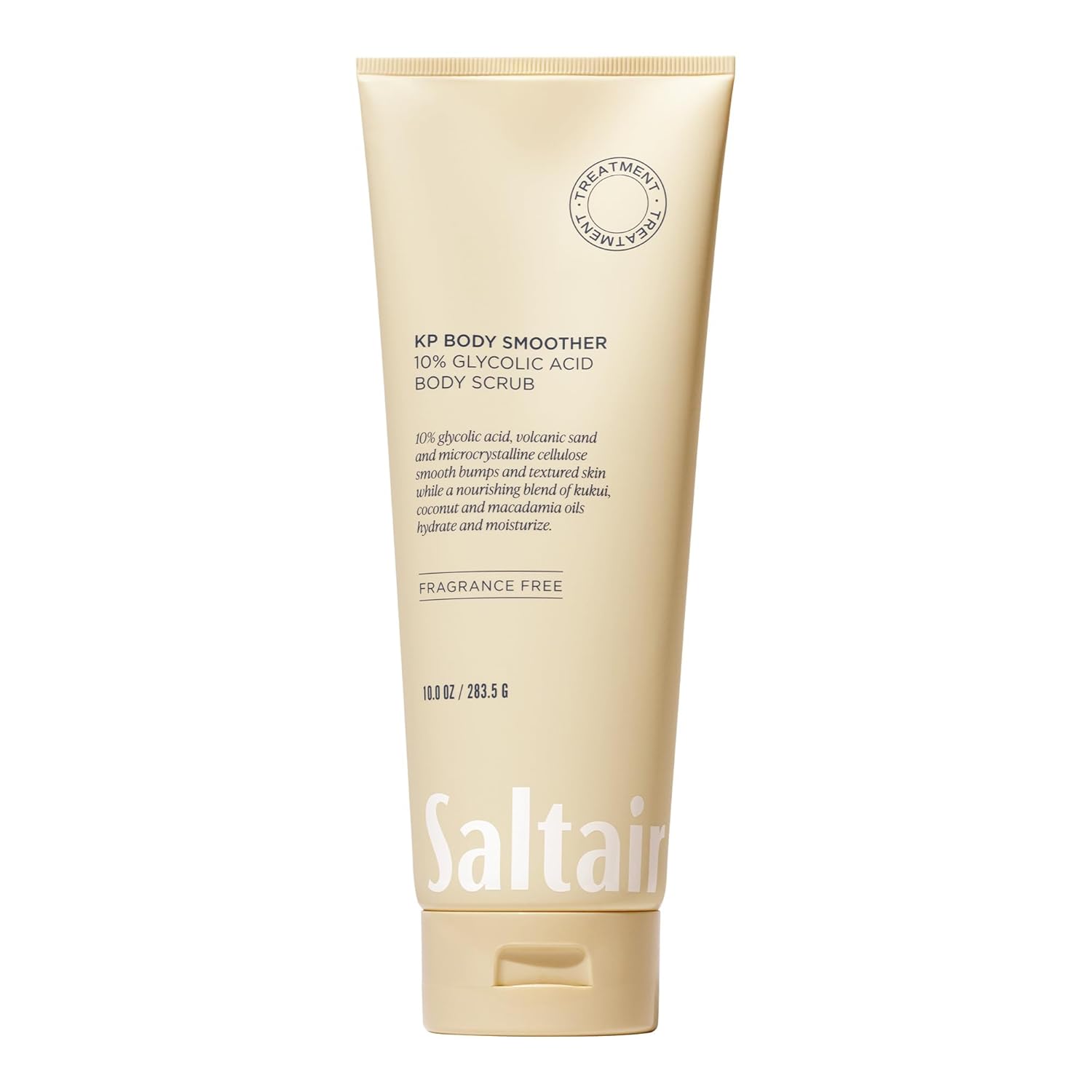 Saltair KP Body Scrub. 10% Glycolic Acid Treatment with Volcanic Sand and Plant Moisturizers. Fragrance-Free Physical Chemical Exfoliator. Exfoliating Body Scrubber for Rough Bumpy Skin, 10oz.