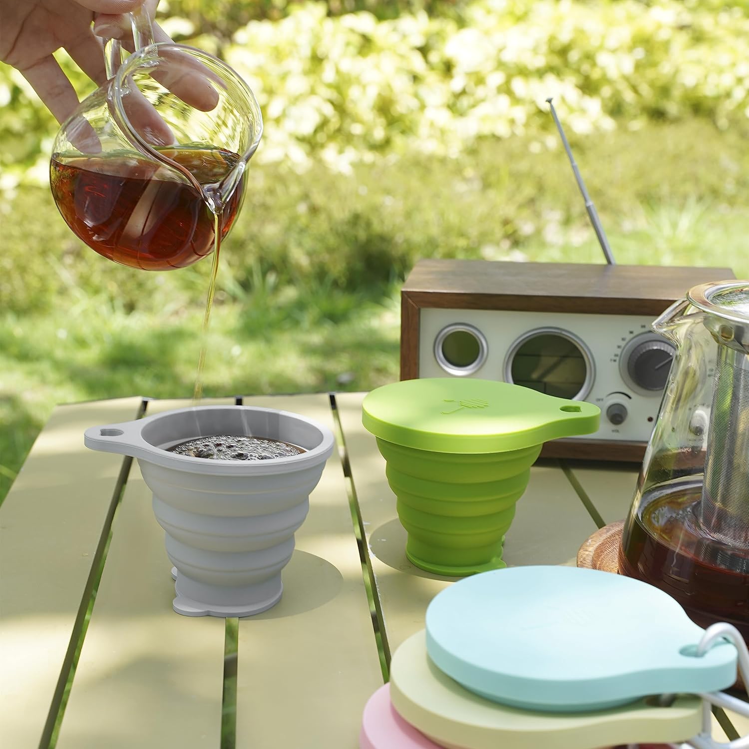 IYYI Collapsible Cup for Traveling, Silicone Camping Cup, Foldable Mug with Lid, Portable Cup for Camping, Hiking, Outdoors, Travel, Folding Mug (Gray-Matcha