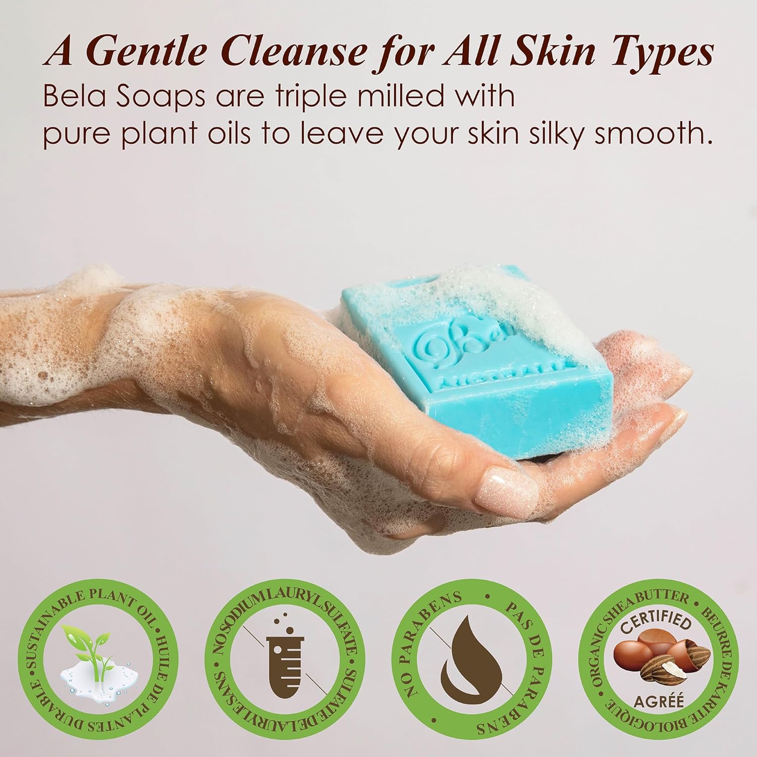 BELA Sea Salt and Goats Milk Soap 3.3 OZ, Pack of 6, Long Lasting French Triple Milled Bar Soap with Organic Shea Butter, Sea Salt Minerals and Nourishing Goat Milk, Made in Australia