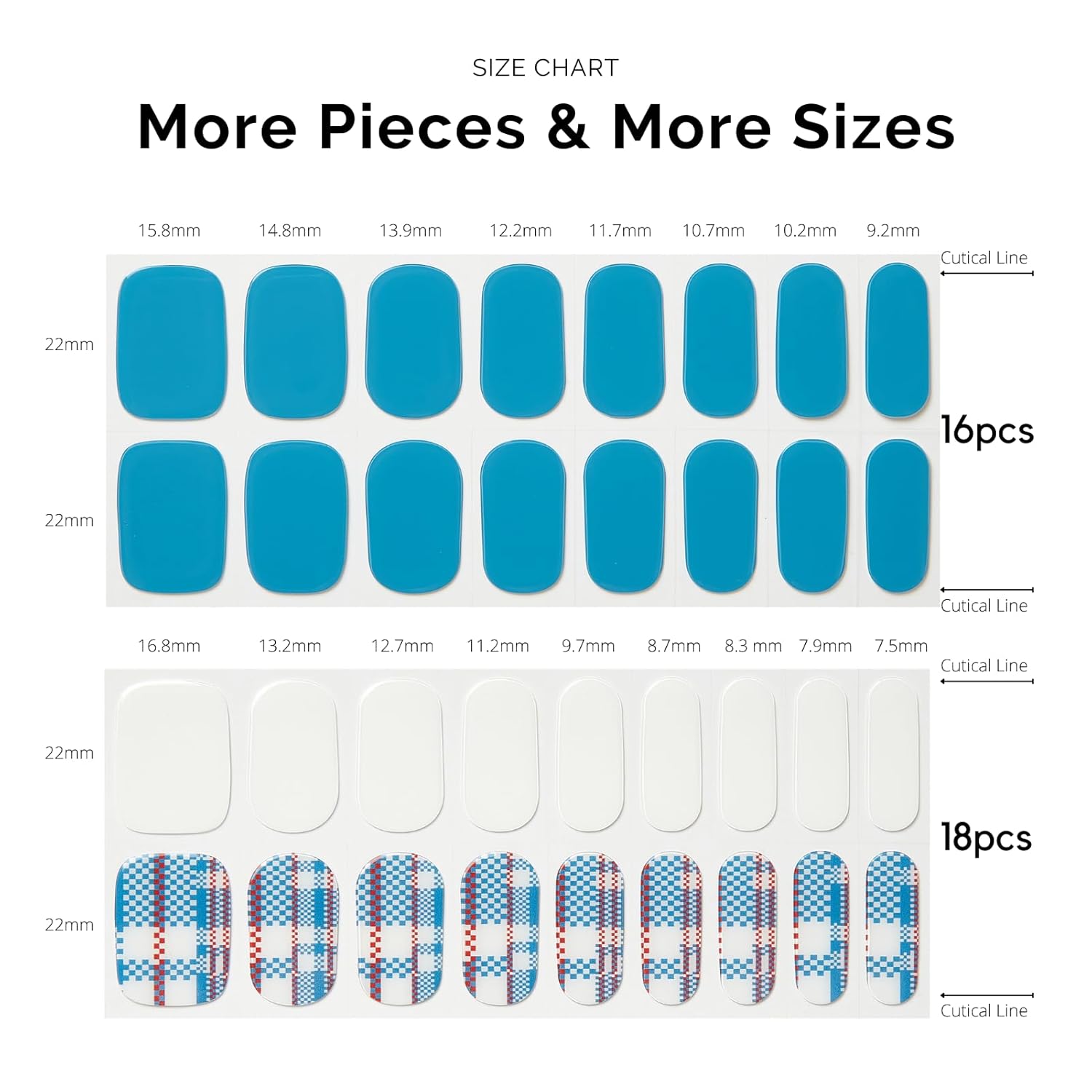 - 【WHAT YOU GET】34 Pieces gel polish strips in 17 sizes, 2 prep pads, 1 nail file, and 1 wooden stick. -Our semi cured nail strips are free from toxic, animal-derived, or harmful ingredients and are vegan, safe to use, and odorless. A perfect cost & time-saving DIY manicure kit.