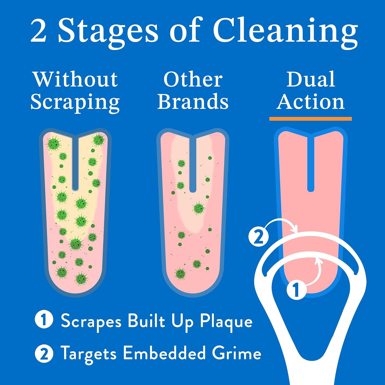 - REMOVE BUILDUP & REDUCE BAD BREATH IN SECONDS: This tongue scraper is a great way to clean your tongue and tackle bad breath. Use our tongue scraper (limpiador de lengua, raspador de lengua) to remove buildup that causes bad breath and poor oral hygiene. After using our affordable tongue scraper, you'll notice enhanced overall taste, improved oral hygiene, and reduced bad breath!