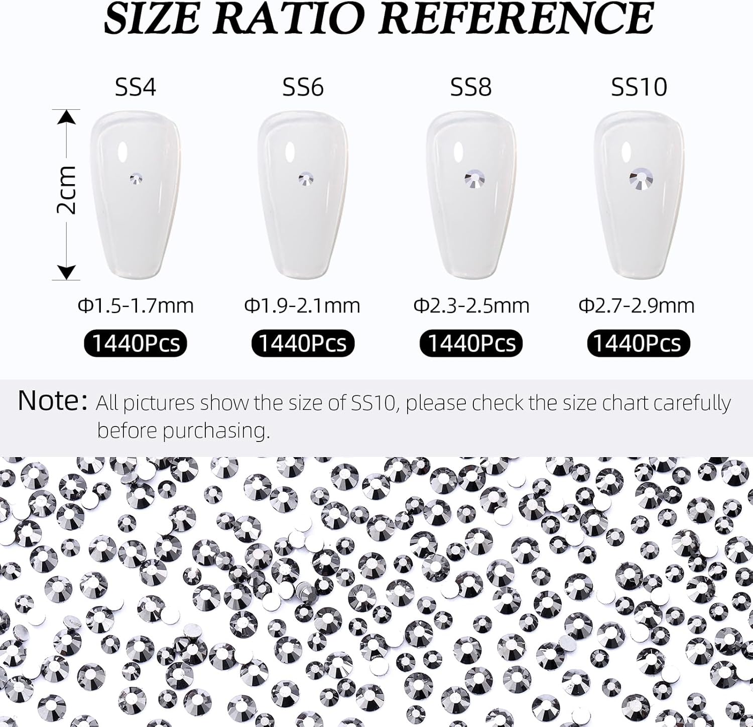 Black Hematite Flatback Rhinestones, Glass Rhinestones for Nail Art and Craft, Glue Fix, Loose Crystal Gemstones(Black Hematite, SS8, 1440pcs, 2.3-2.5mm)