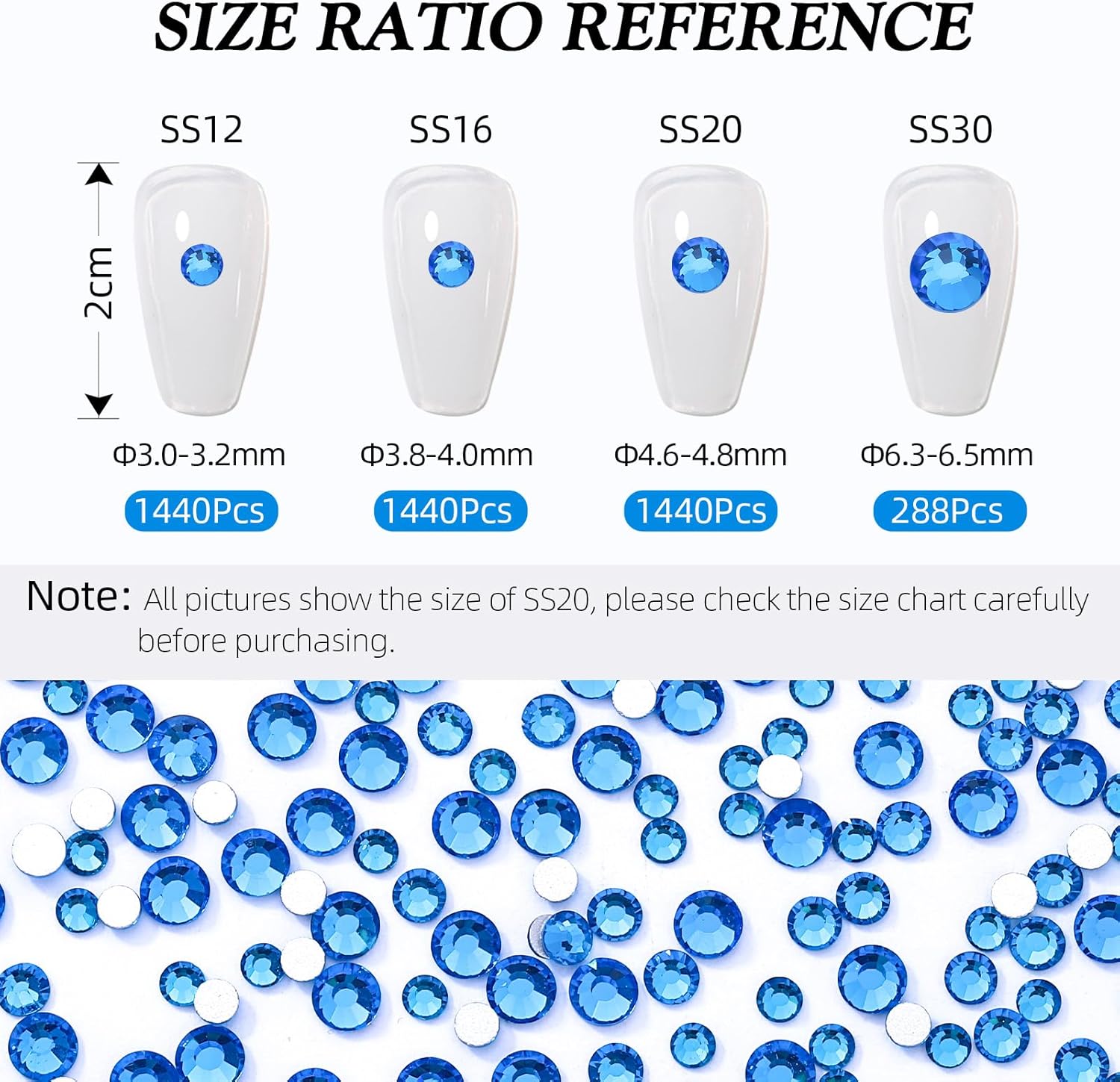 Capri Blue Flatback Rhinestones, Glass Rhinestones for Nail Art and Craft, Glue Fix, Loose Crystal Gemstones(Capri Blue, SS20, 1440pcs, 4.6-4.8mm)