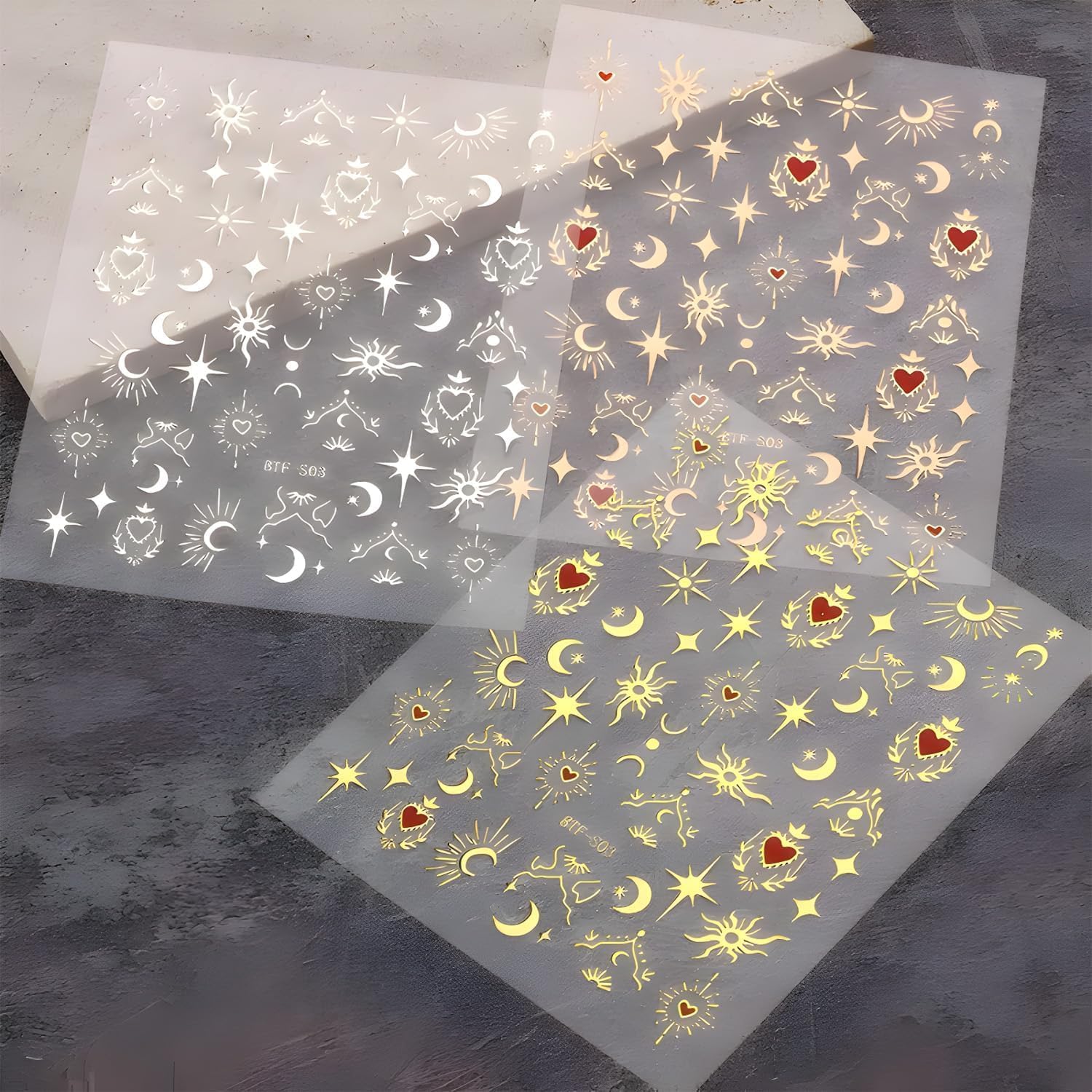 - Fashion Nail Designs:There moon nail decals are many kinds of stickers,including sun,moon,star,heart and so on,Large number of different patterns for you to use and replace in daily life, nail decals are full of sensuality and elegance, Various charming patterns bring you a different mood.