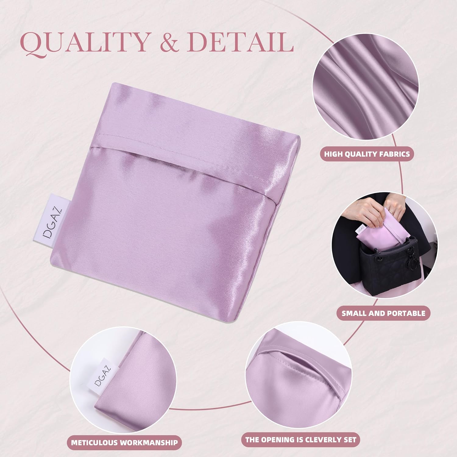 DGAZ Silk Sanitary Napkin Storage Bag, Period Bag for Teen Aged Girls, Portable Period Bag for Panty Liners/Menstrual Cup/Small Tampons,Mini Makeup Bag for Purse(Lavender)