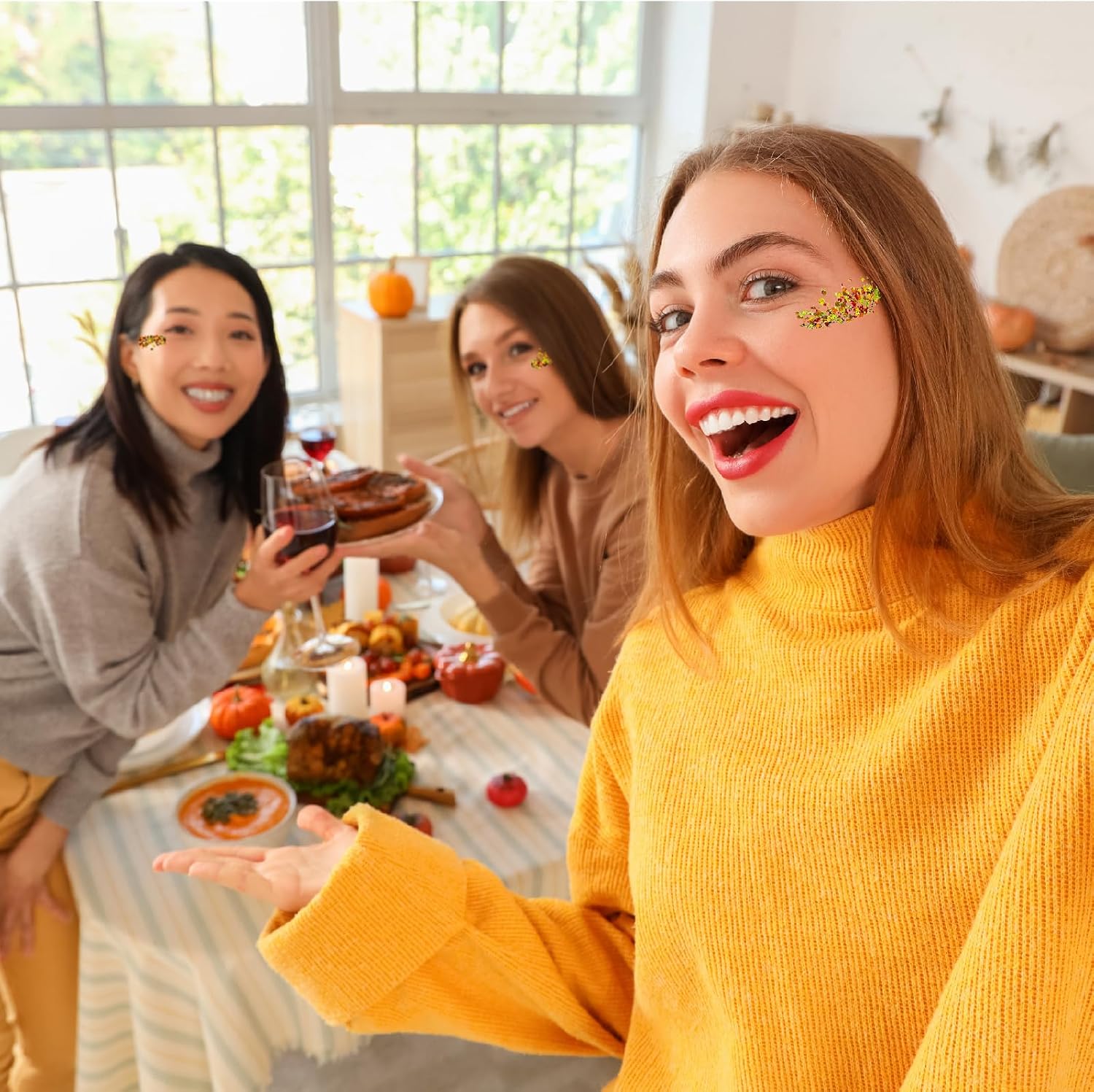 - Add a vibrant and shimmering touch to your Thanksgiving makeup and costume with this glitter gel