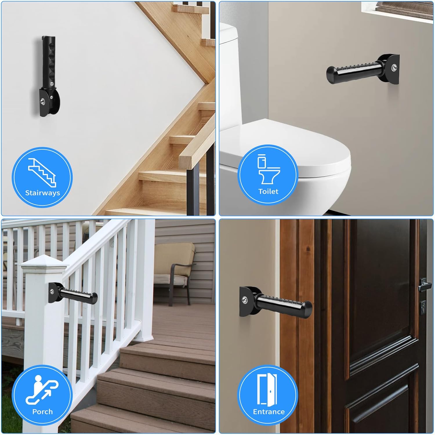 - 【Space-Saving Flip Handrail】- Easily folds up when unused to free up space. Flips down to reveal a sturdy triangular base for stable, secure support when needed.