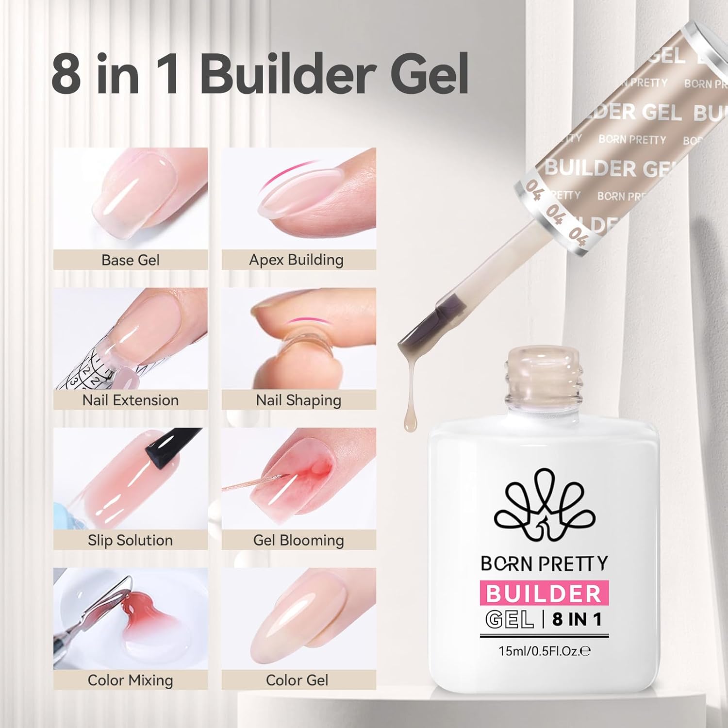 - STAY BEAUTIFUL & GIFTS: BORN PRETTY Builder Nail Gel is appropriate for any holiday or special event,such as birthday, holiday, anniversary, Christmas, Valentine's Day, Halloween gift. It can be paired with with similar colors or glitter gels for a variety of jobs, outfits, and events to show off your unparalleled beauty.