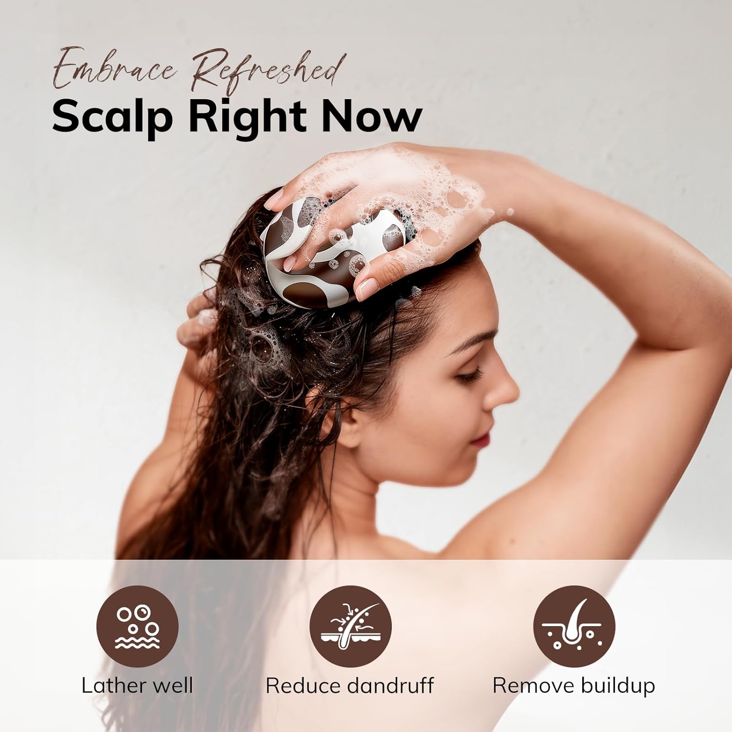 - Effective Exfoliation And Cleansing: This hair scrubber has long flexible teeth that remove dandruff and product buildup that are hard to remove with your fingers. It works well to allow the shampoo to fully lather, easily scrub away grease and thoroughly cleanse your hair and scalp