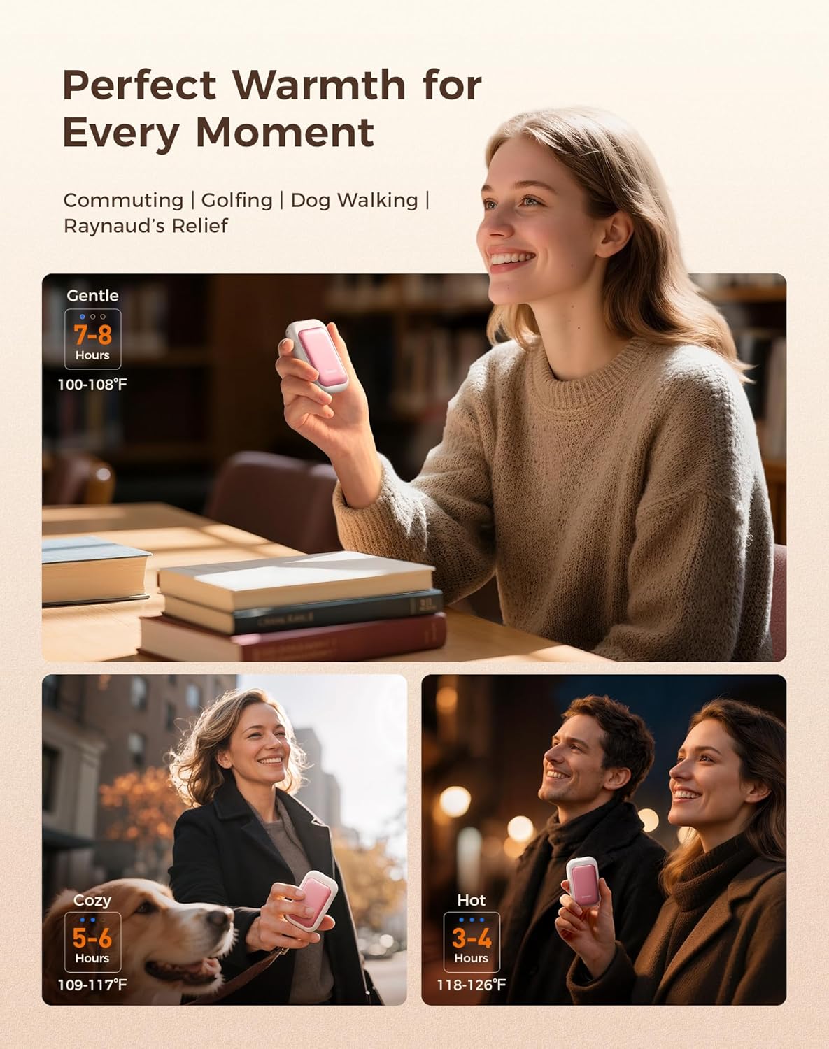 - Instant Heat, Lasting Warmth: Unlike disposable hand warmers, it is a rechargeable and reusable hand warmer. This USB hand heater offers up to 8 hours of continuous heat on the lowest setting, with three adjustable temperature levels ranging from 100°F to 126°F, providing personalized warmth for you all day long