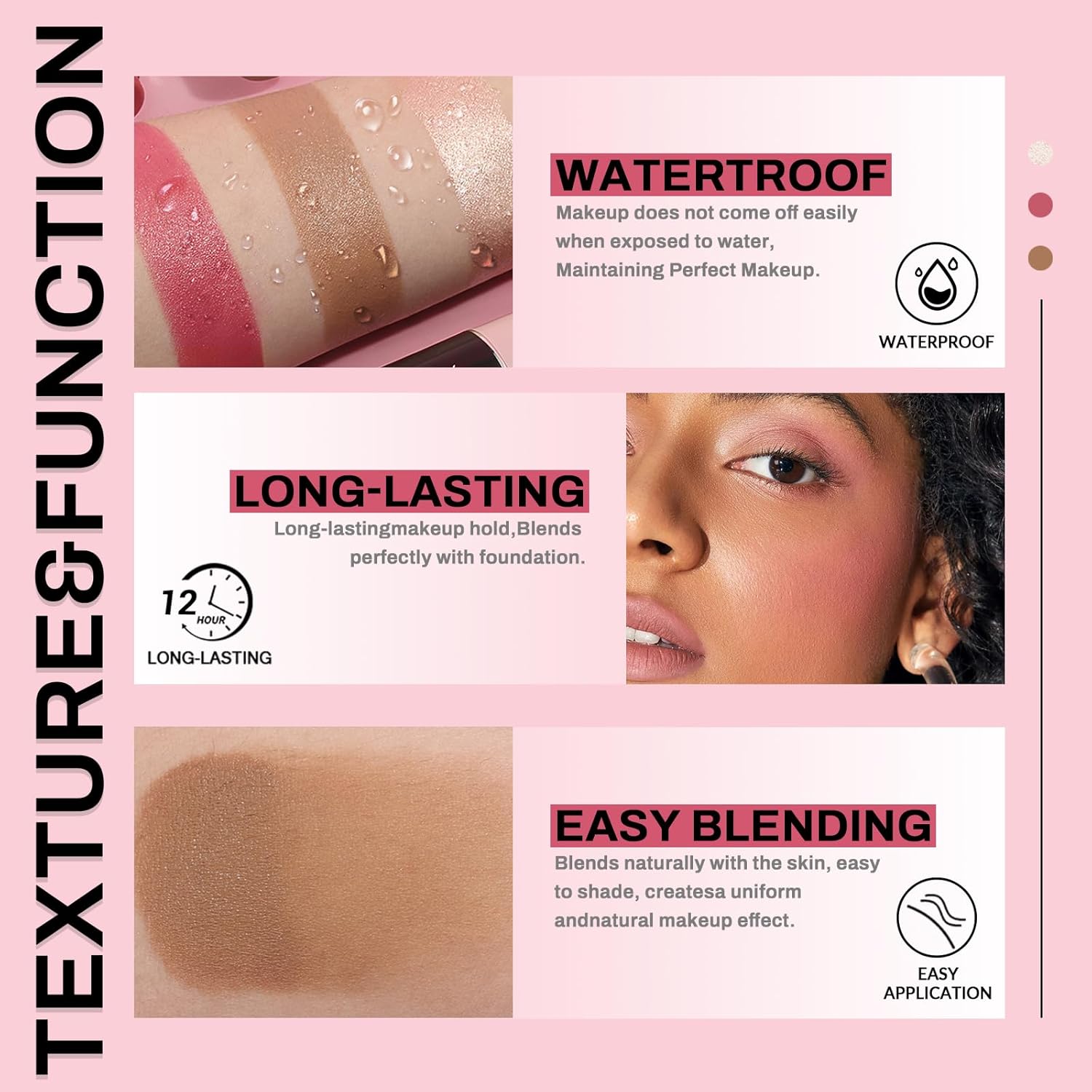 - Last All Day Long: Made of high quality material, won't clump, crease or clog pores, long-lasting waterproof, sweat proof, silky smooth, easy to apply makeup, won't fade, lasts all day