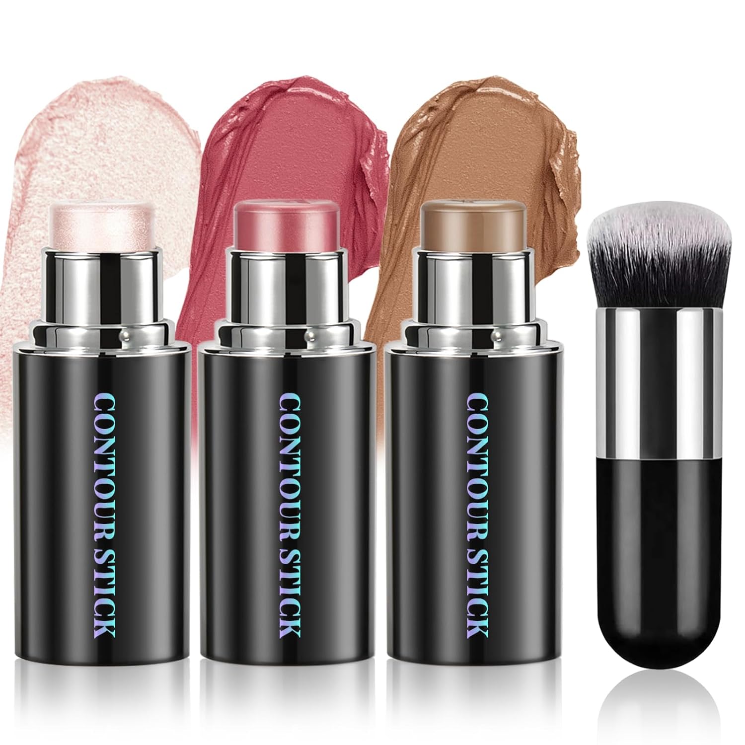 - Soft Brush & Easy to Apply: Gently apply the highlighter Stick, contour Stick and blush stick to the forehead, cheeks, jawline, and nose, and then gently smudge with the soft makeup brush until it blends into the skin for a natural, healthy-looking glow