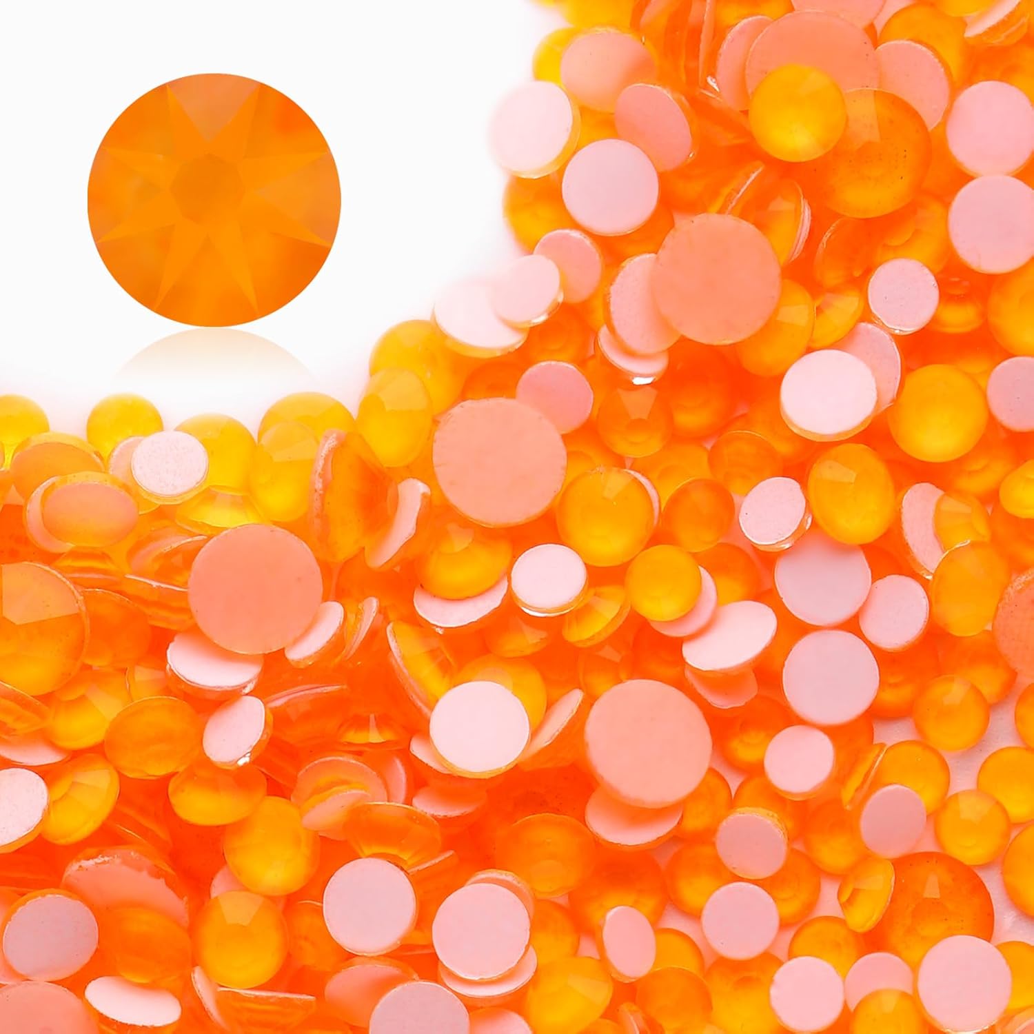 Neon Orange Flatback Rhinestones, Glass Rhinestones for Nail Art and Craft, Glue Fix, Loose Crystal Gemstones(Neon Orange, SS8, 1440pcs, 2.3-2.5mm)