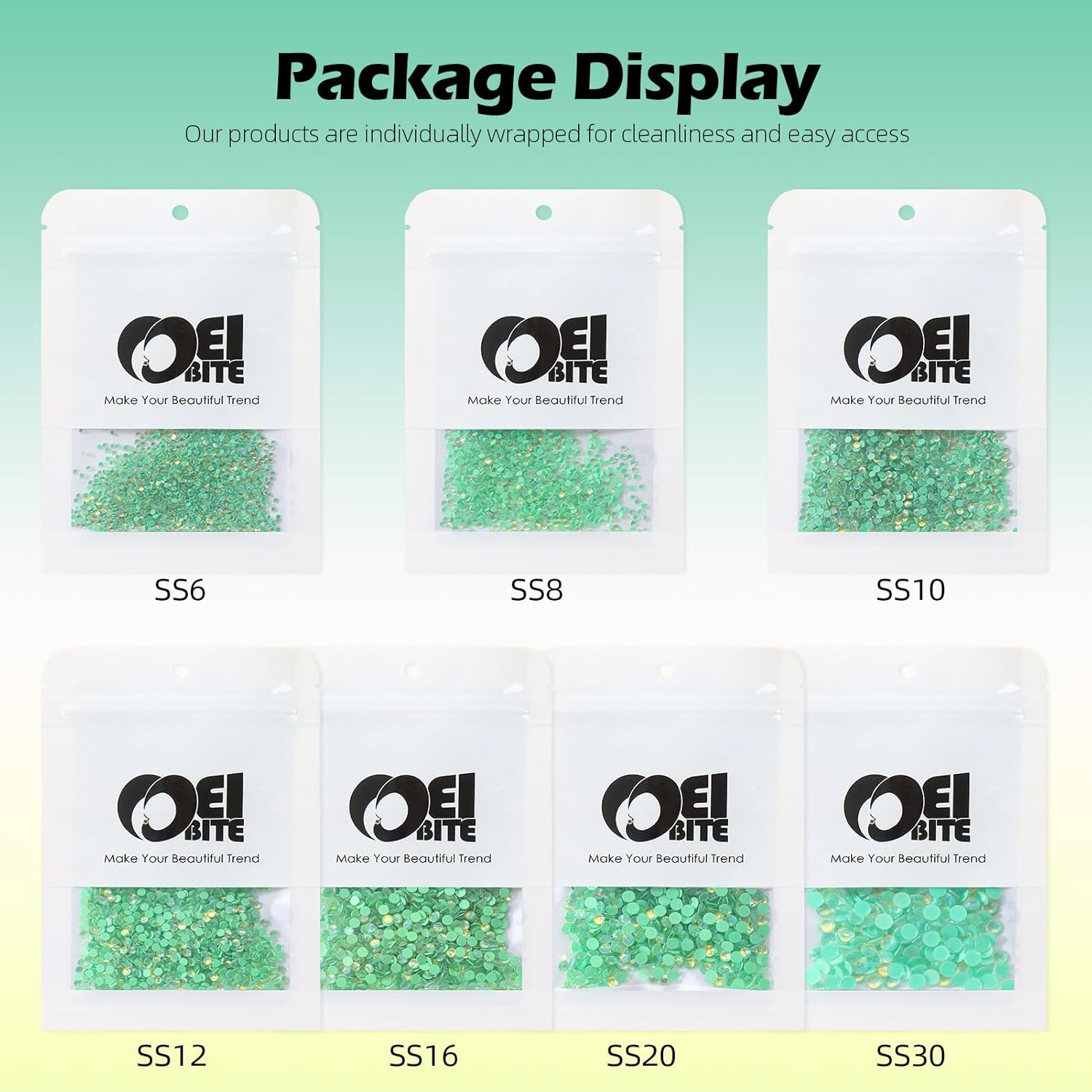 - Product Packaging: Bags packaging SS8 2.3~2.5 MM - 1440 Pcs F Green flatback rhinestones