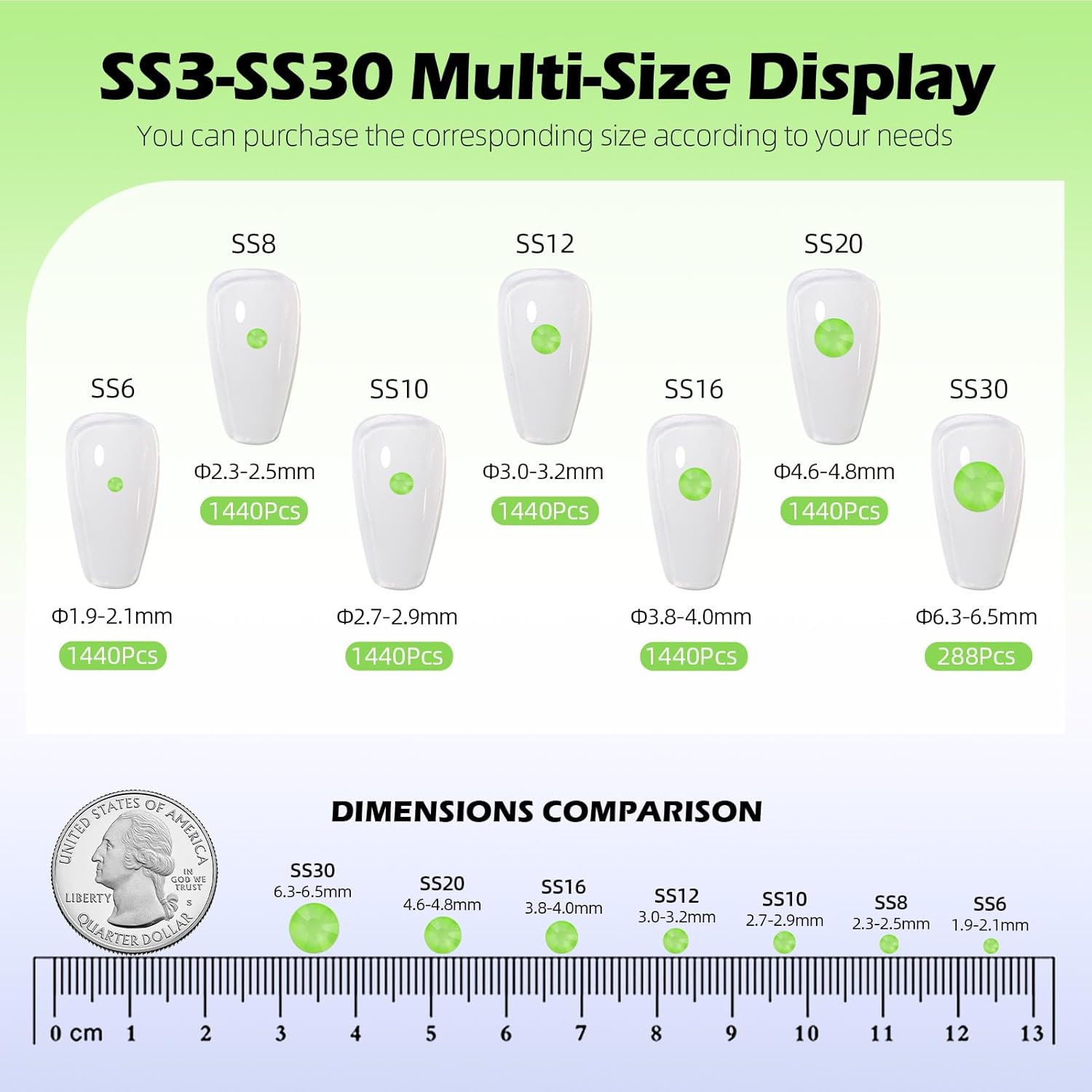 Mocha Lt.Green Flatback Rhinestones, Glass Rhinestones for Nail Art and Craft, Glue Fix, Loose Crystal Gemstones(Mocha Lt.Green, SS10, 1440pcs, 2.7-2.8mm)