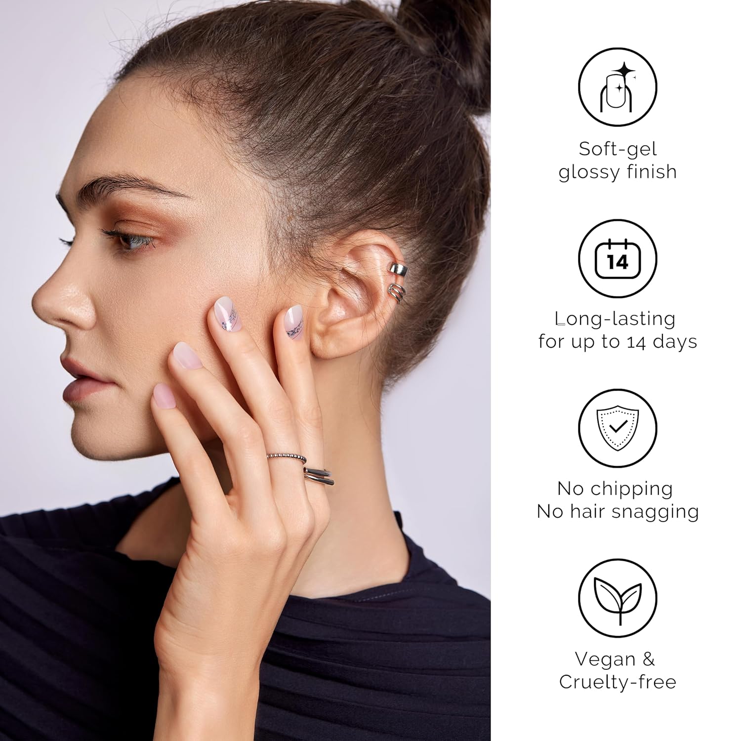- ❤SALON QULITY: Made of real nail polish 60% precured, soft to fit all nail shapes - Nailog semi cured gel nail strips with waterproof top gel last up to 2 weeks once cured with a UV lamp. Our gel nails are also extremely lightweight so they do feel like your own nails!