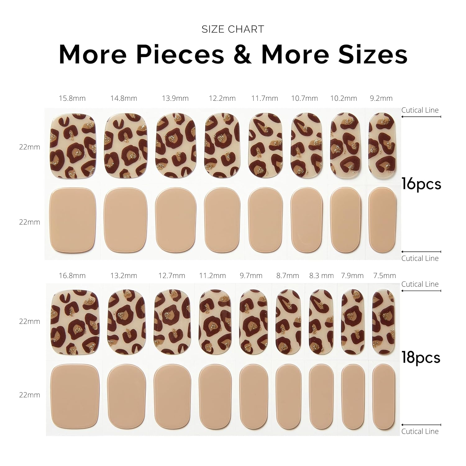 Semi Cured Gel Nail Strips - NAILOG 34 Pcs Gel Nail Stickers | Buy 2 Get 1 UV Light | Extra Long Nail Wraps with Glossy Gel Finishing Brown, Desert Wild