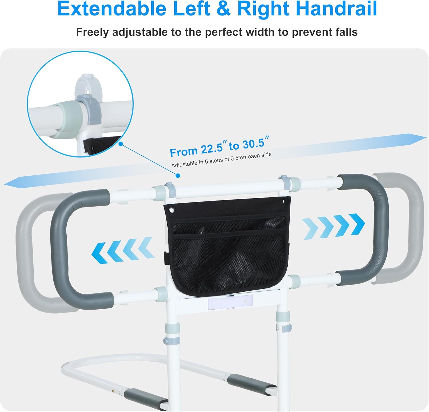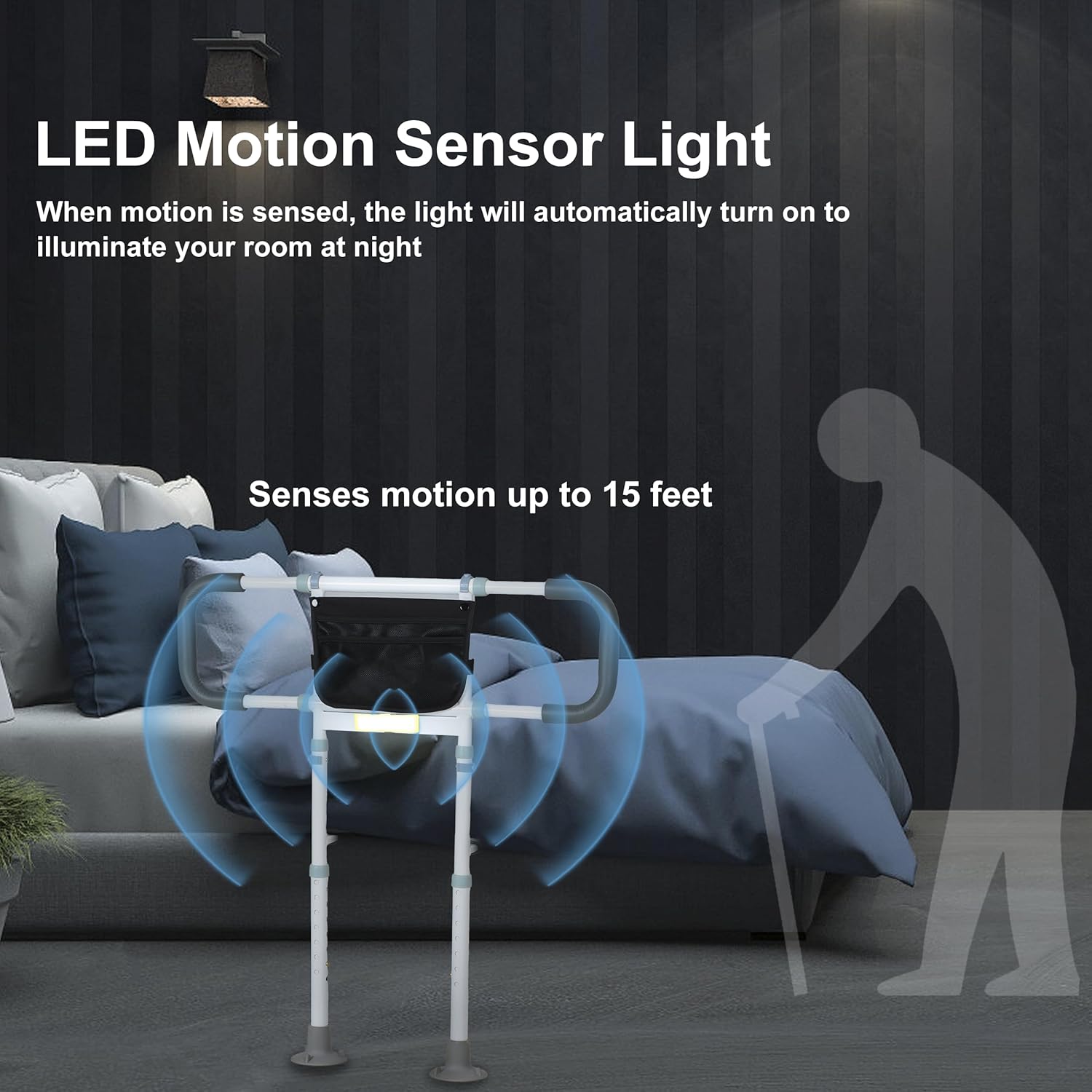 Bed Rails for Elderly Adults Safety - Elderly Assistance Products, Bedrails for Rlderly Adults Grab Bar Bed Handrails, Bed Rail with Pocket, Motion Sensor Light Fits King, Queen, Full, Twin (White)
