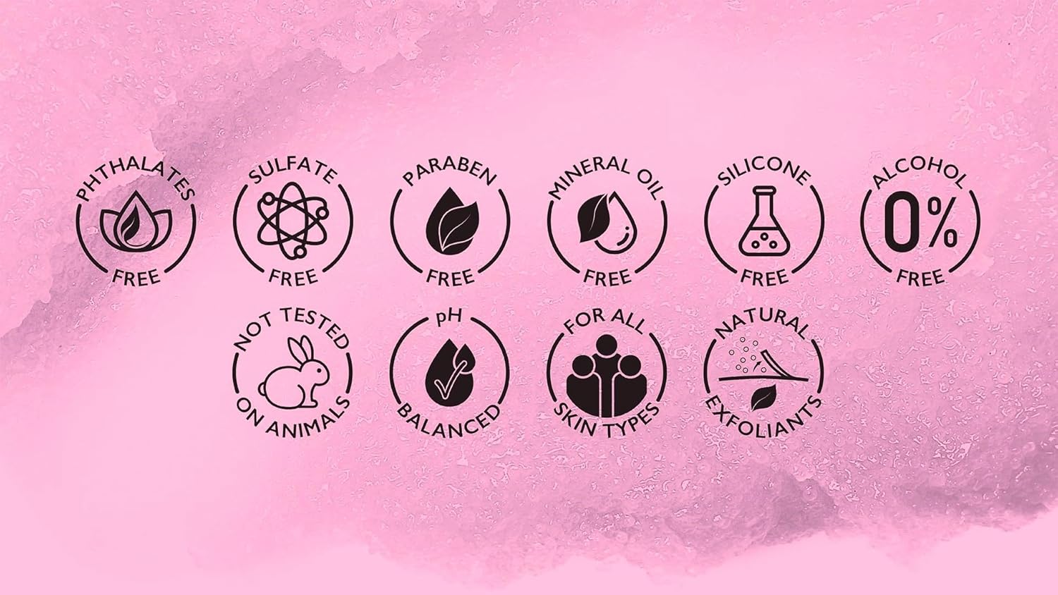 - Clean Beauty: We prioritize your well-being and the environment. Our body scrub is free from harsh chemicals, parabens, and sulfates. We are committed to using only cruelty-free and clean ingredients, like natural exfoliants that are biodegradable