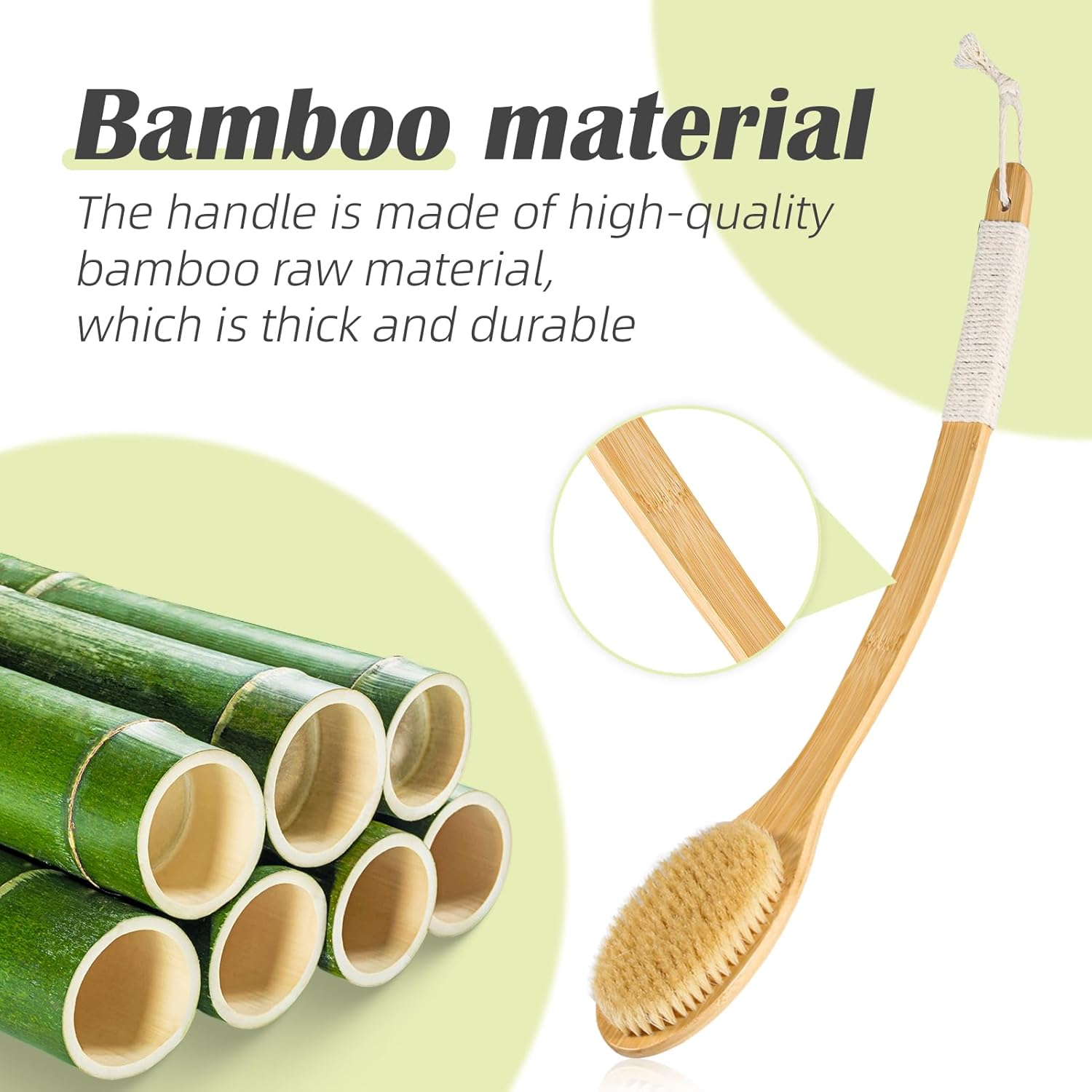 - Easy to use - Features an ergonomic design with a 22" long curved non-slip bamboo handle, the shower back brush can help you to wash the corner of your body easily where you can not touch with your hands