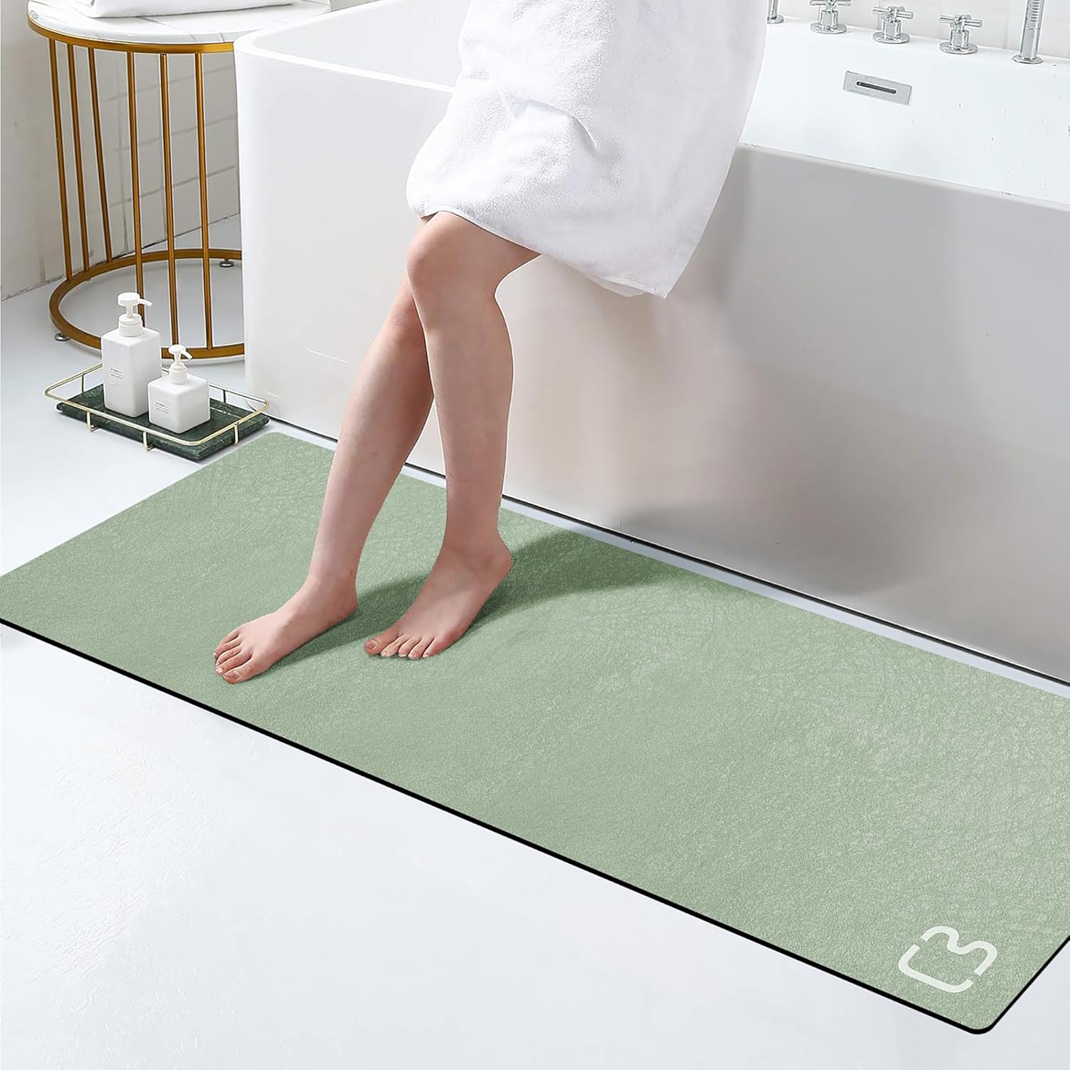 - 【Versatile Usage】This thin bathroom mat is designed to fit under the door and can be used in various settings. Whether in the bathroom rug runner, kitchen mat, laundry room, vanity, sink, hallway, or RV mat, this diatomite stone bath mat adds a stylish and functional touch to any space.