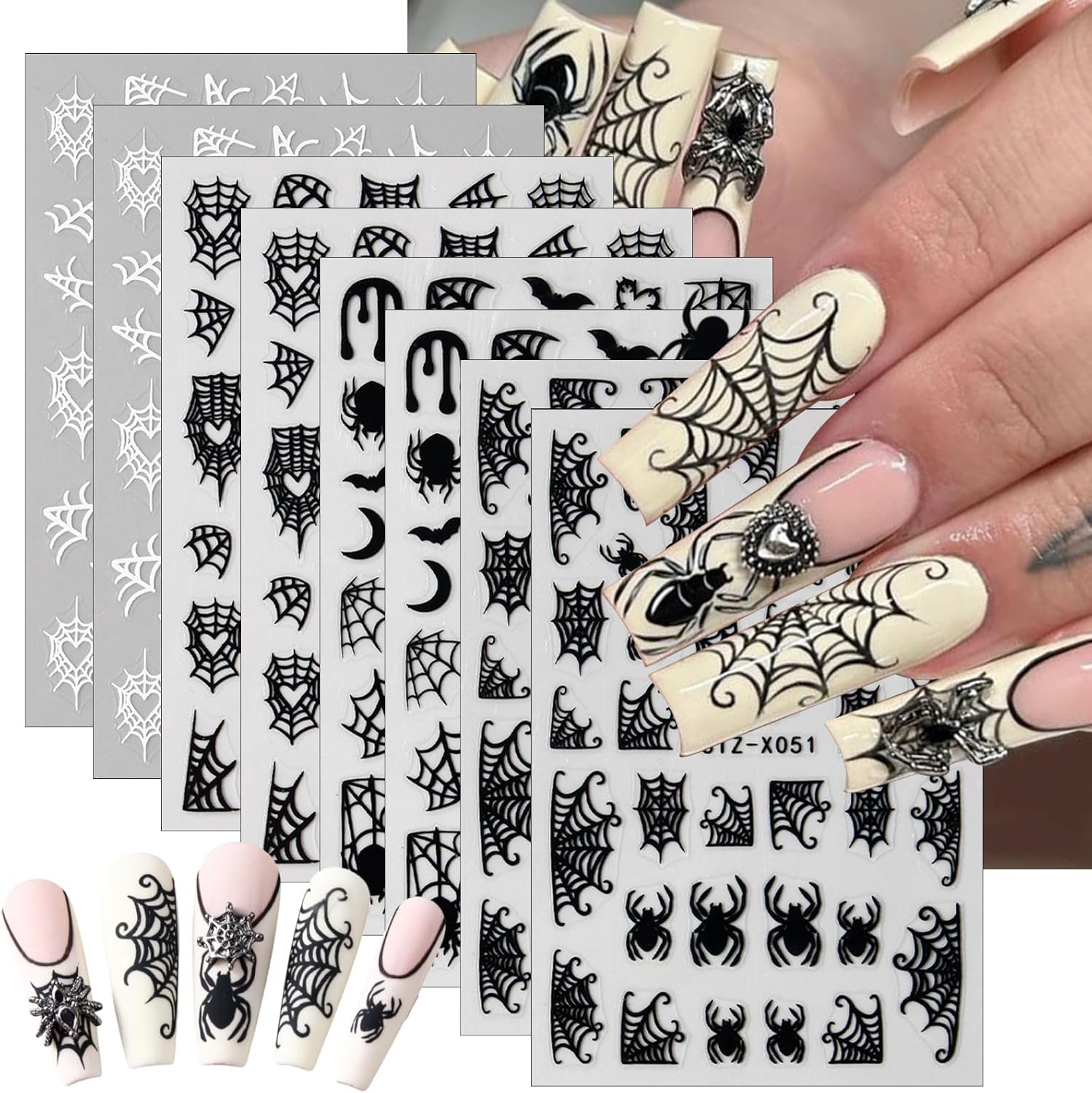 - Halloween Nail Stickers- You will get 8 sheets spider web nail art stickers for acrylic nails supply, many pattern for you to choose, black bat nail designs, and satisfy your rich imagination of nail DIY.
