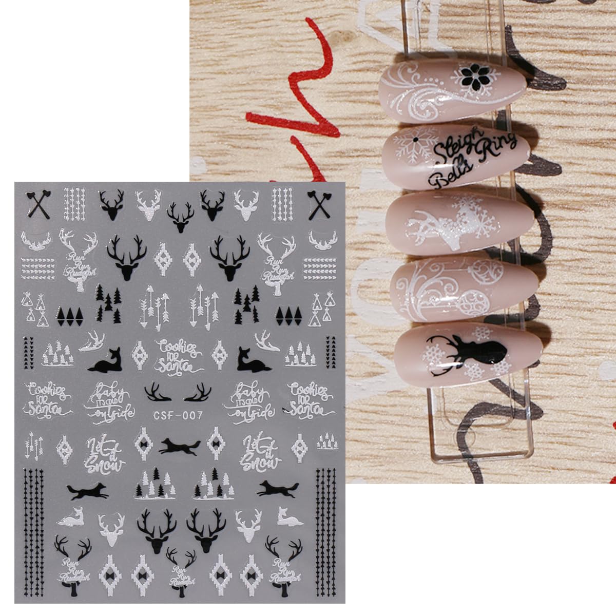 JMEOWIO 9 Sheets Christmas Glitter Nail Art Stickers Decals Self-Adhesive White Black Nail Supplies Nail Art Design Decoration Accessories