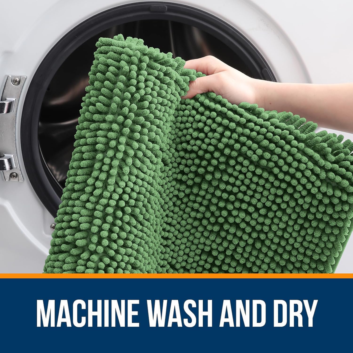 OLANLY Bathroom Rugs 59x20, Extra Soft Absorbent Chenille Bath Rugs, Rubber Backing Quick Dry, Machine Washable Bath Mats for Bathroom Floor, Tub and Shower, Home Decor Accessories, Olive Green