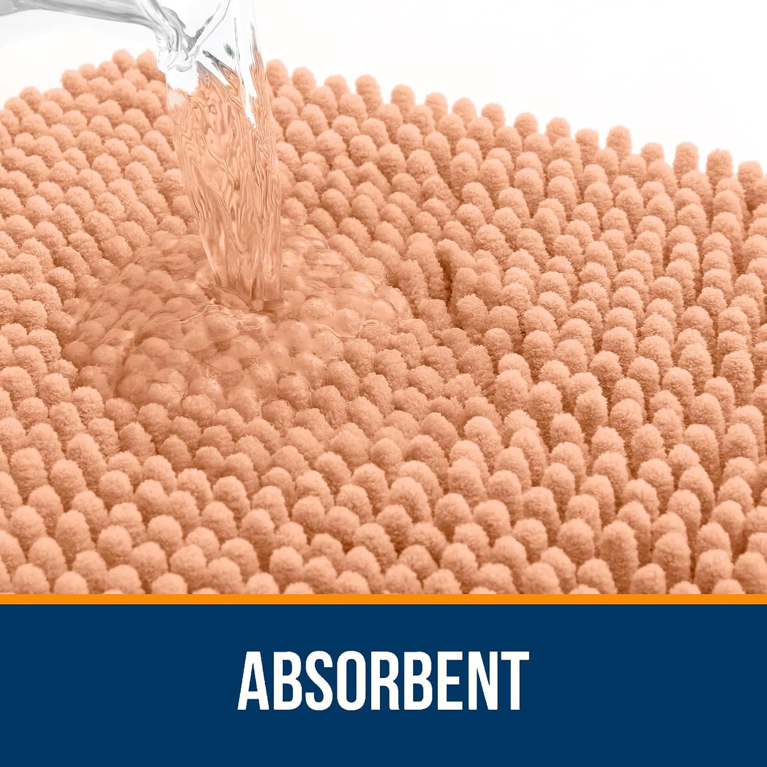 OLANLY Bathroom Rugs 70x24, Extra Soft Absorbent Chenille Bath Rugs, Rubber Backing Quick Dry, Machine Washable Bath Mats for Bathroom Floor, Tub and Shower, Home Decor Accessories, Peach