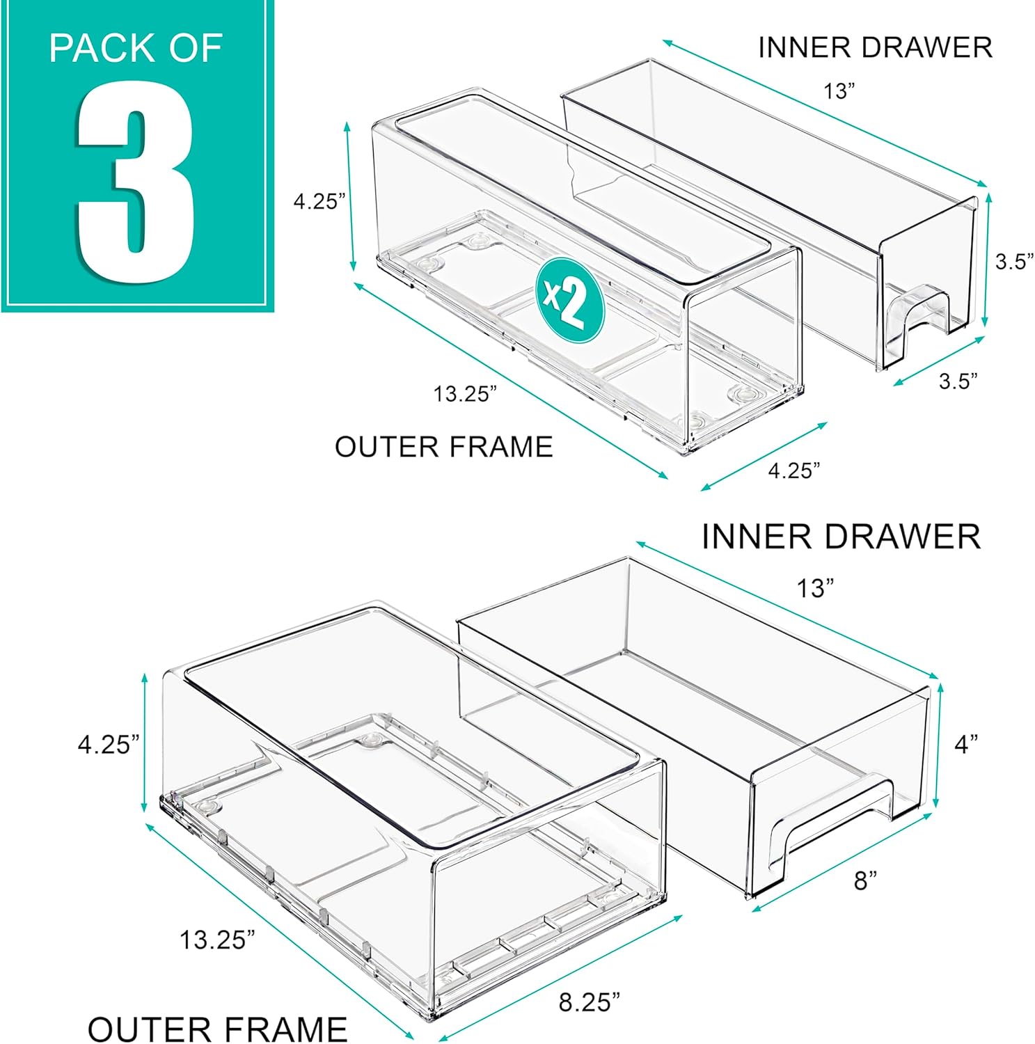Sorbus 1 Medium & 2 Small Clear Stackable Storage Drawers – Plastic Organizer Bins with Handles – Stackable Pull-Out Storage Drawers for Closet, Pantry, Office, Bathroom, Craft, and Toy Organization